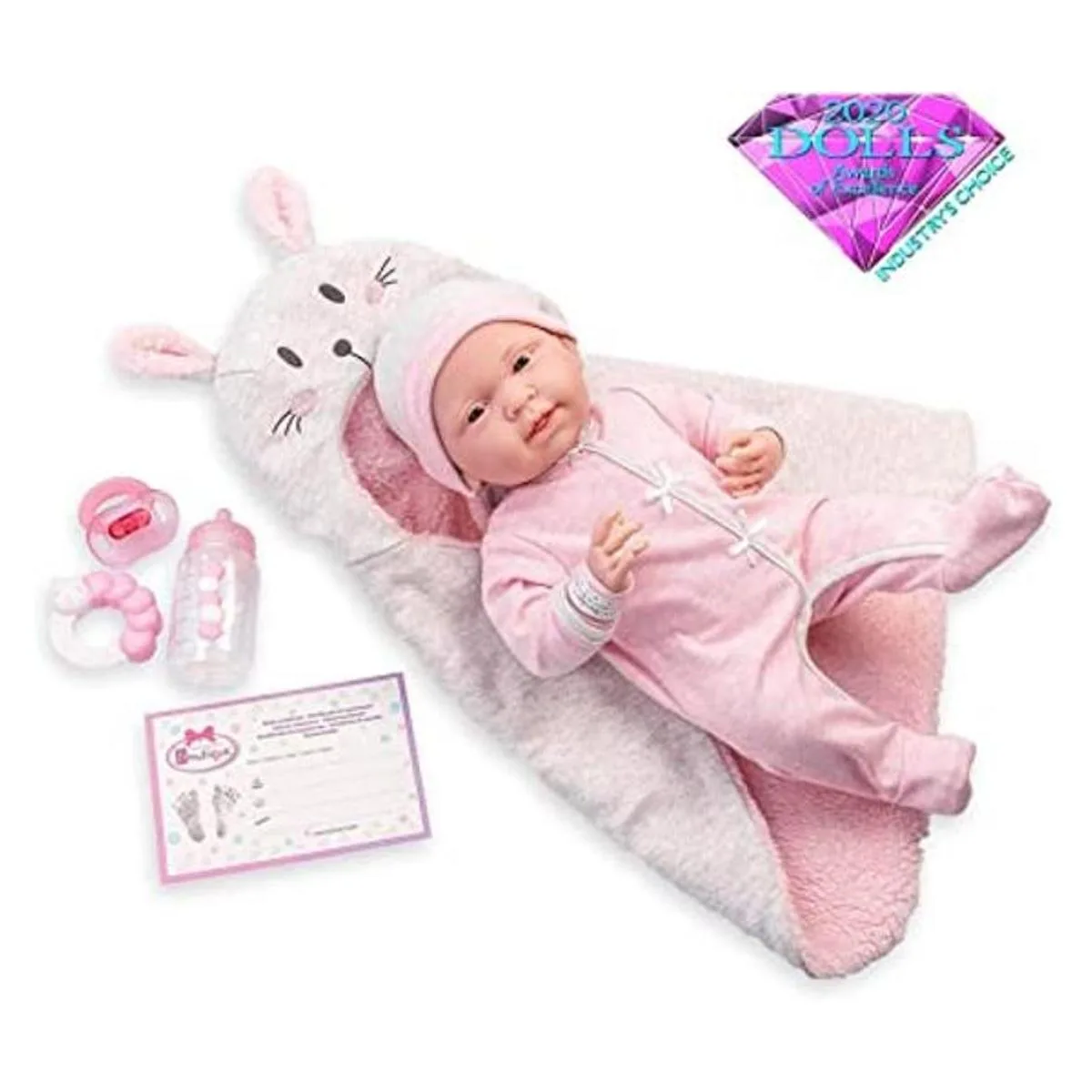JC Toys La Newborn Nursery Muñeca recién nacida suave y flexible de 15.5 pulgadas con accesorios Juego de 8 piezas, disponible en diferentes diseños edades 2