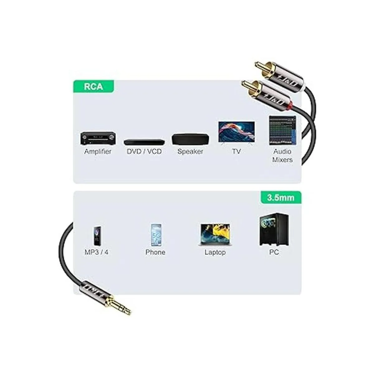 JD Cable de audio RCA, macho de 0.138 in a 2 RCA Phono macho adaptador de audio estéreo cable auxiliar chapado en oro, carcasa de cobre resistente, 3 pies