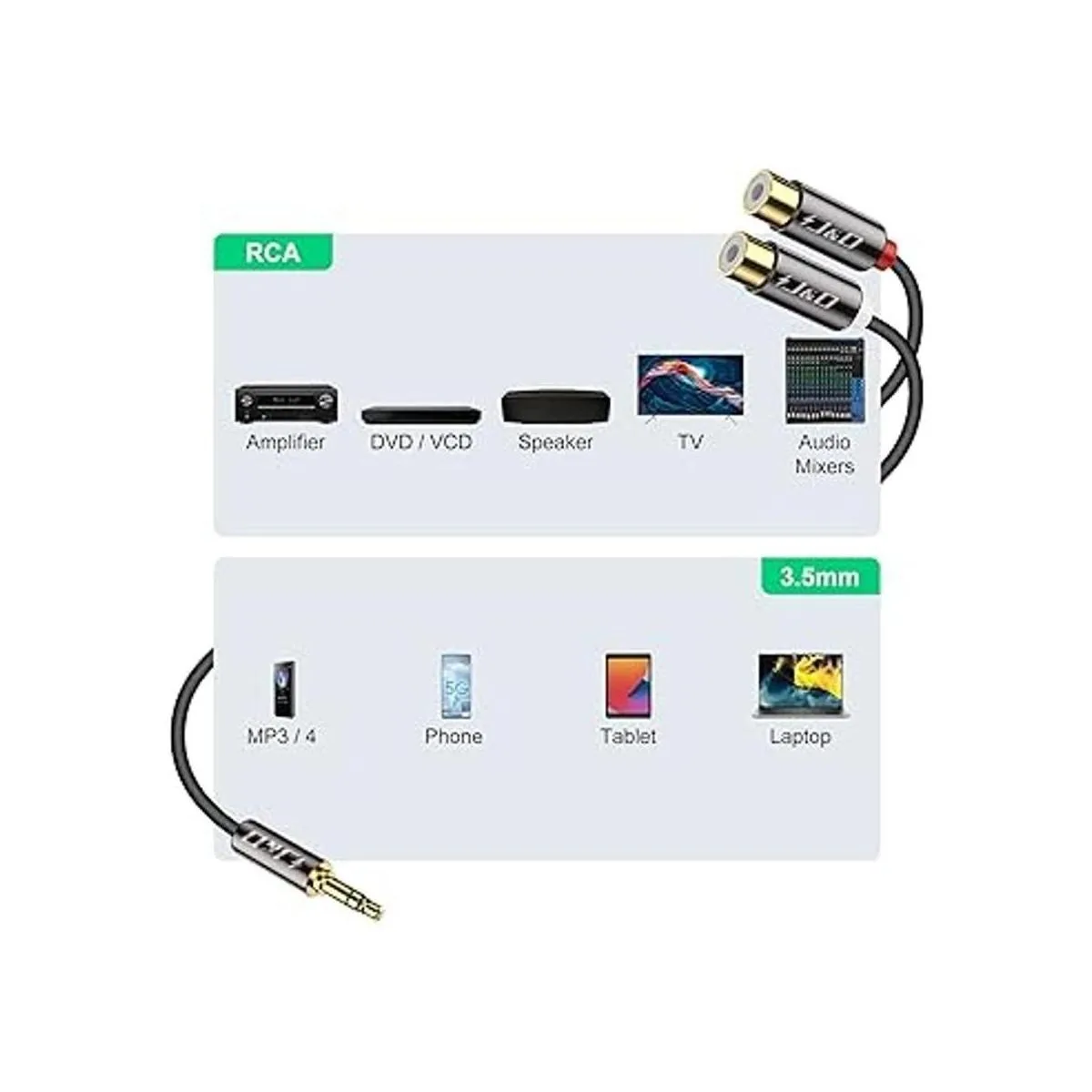 Conexión perfecta: conexión de teléfonos inteligentes Galaxy, etc., reproductor de MP3, tableta o receptor estéreo, altavoz, amplificador y otros dispositivos habilitados para RCA