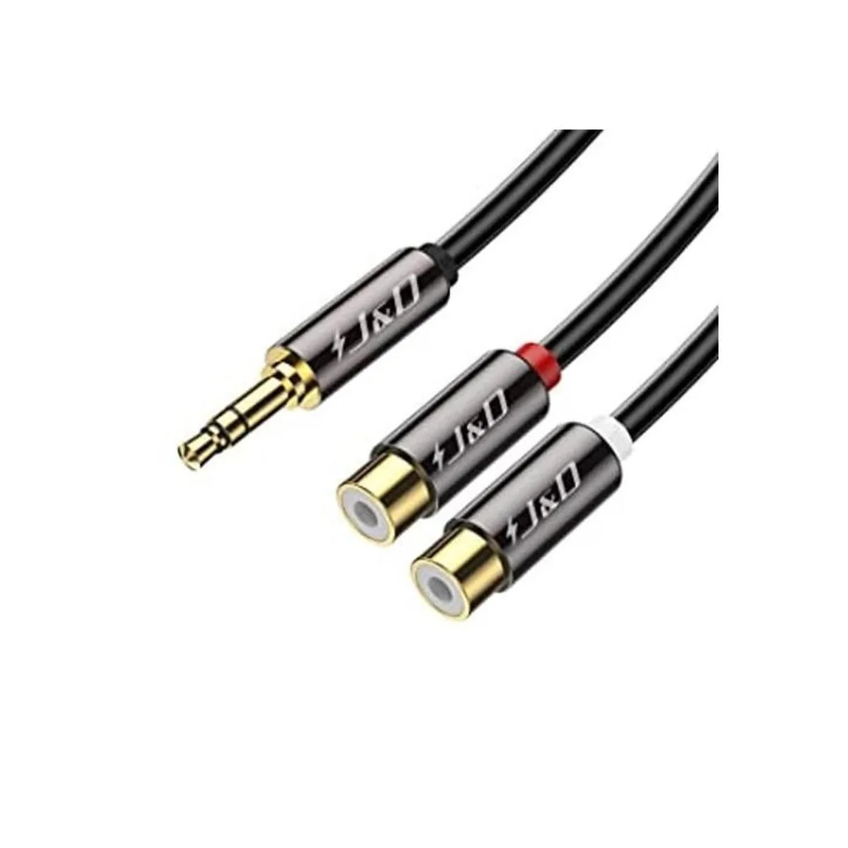 JD Cable RCA de 0.138 in a 2 cables RCA, carcasa de cobre chapada en oro, resistente de 0.138 in macho a 2 RCA hembra cable de extensión de audio estéreo, 3 pies