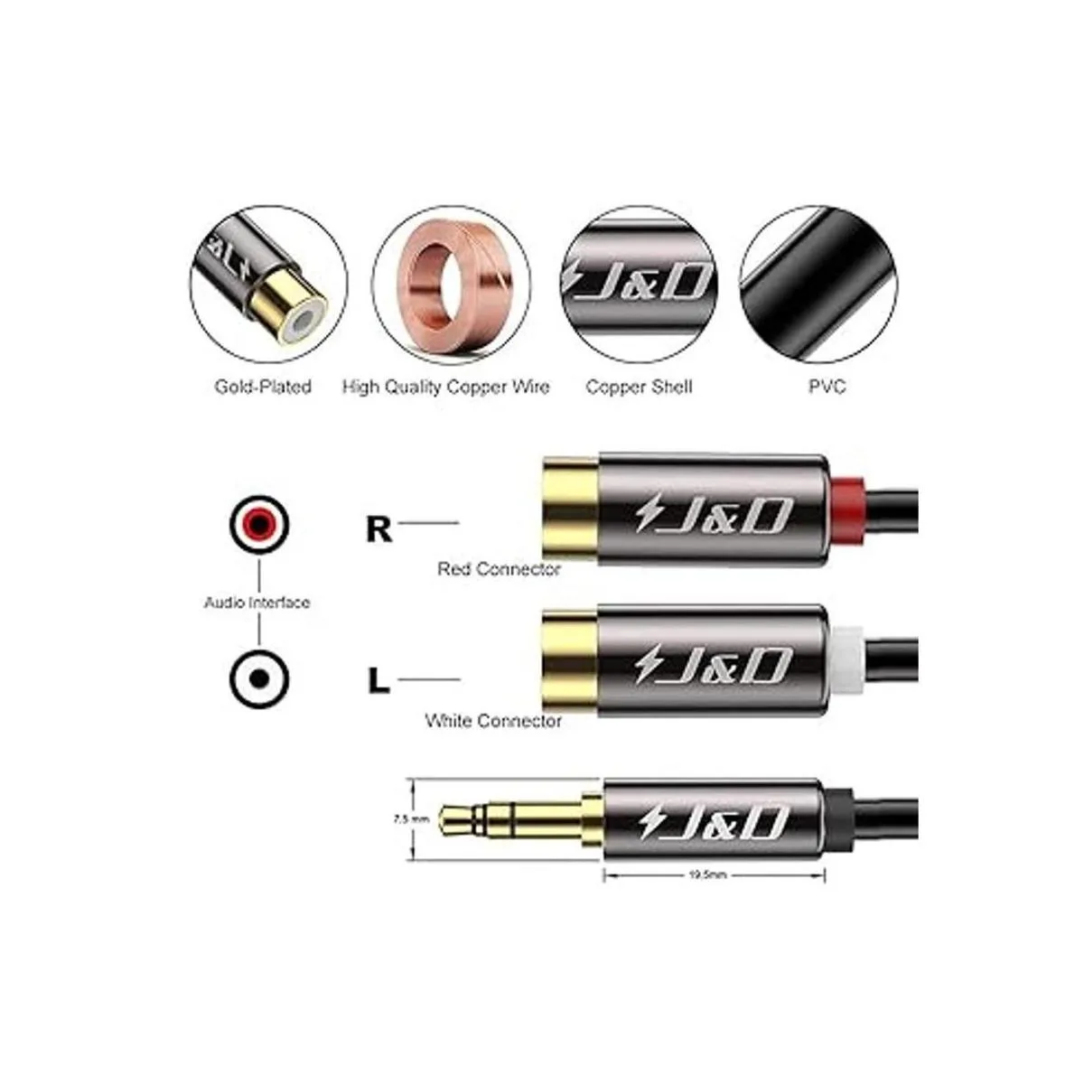 Lo que obtienes: cable RCA JD de 0.138 in a 2 y guía de bienvenida JD, nuestra garantía de 12 meses sin complicaciones y un servicio al cliente amigable