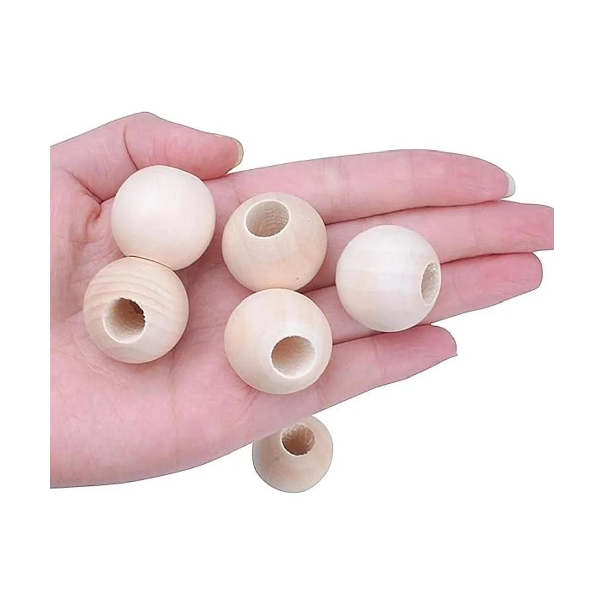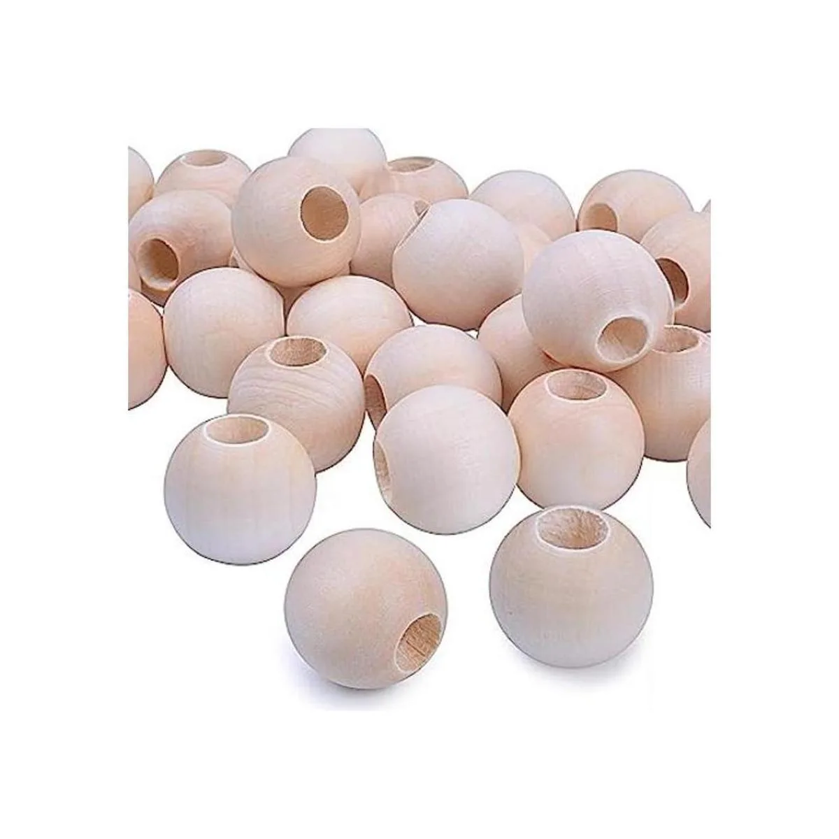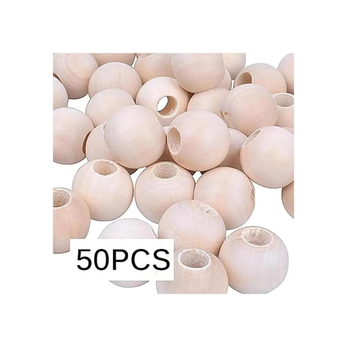 Jdesun 50 cuentas de madera, cuentas sueltas de madera redonda natural, espaciador de madera de 0.984 in x diámetro agujero de 38 pulgadas