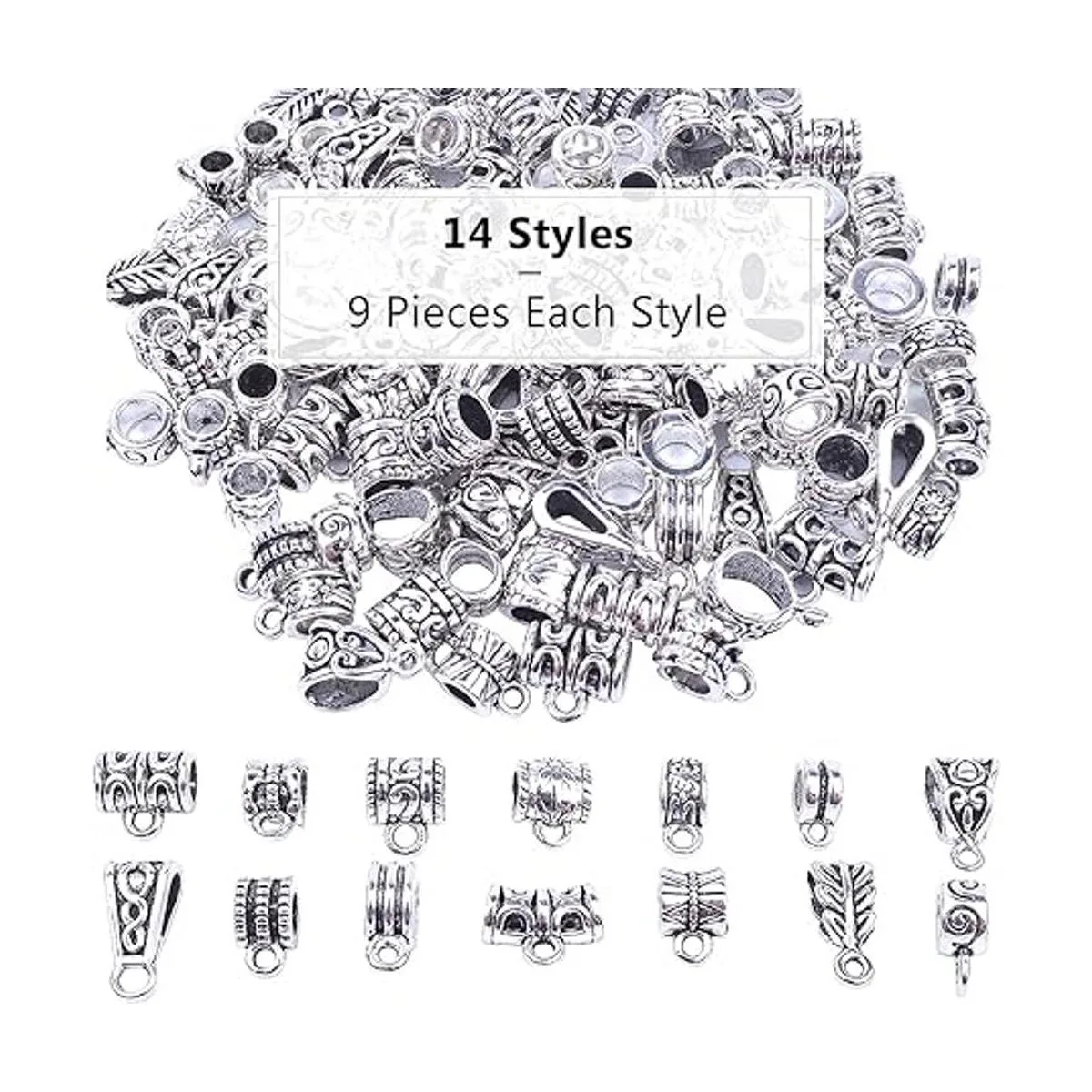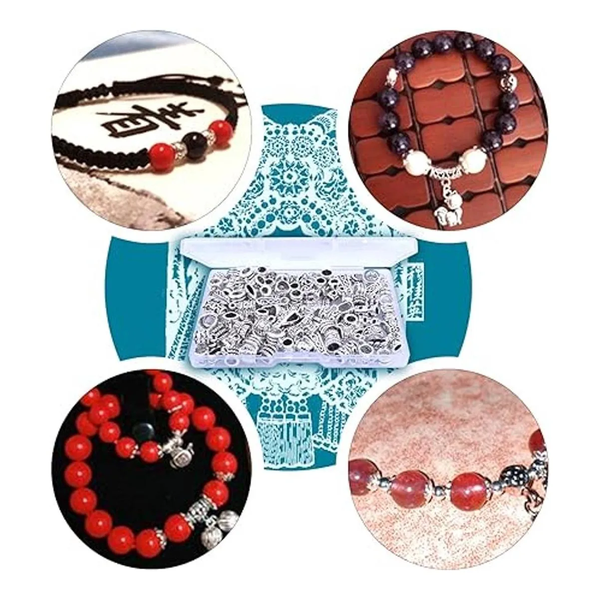 Jdesun Cuentas espaciadoras de 3.53 oz, 14 estilos, plata tibetana, para hacer joyas, pulseras, collares, 120126 piezas