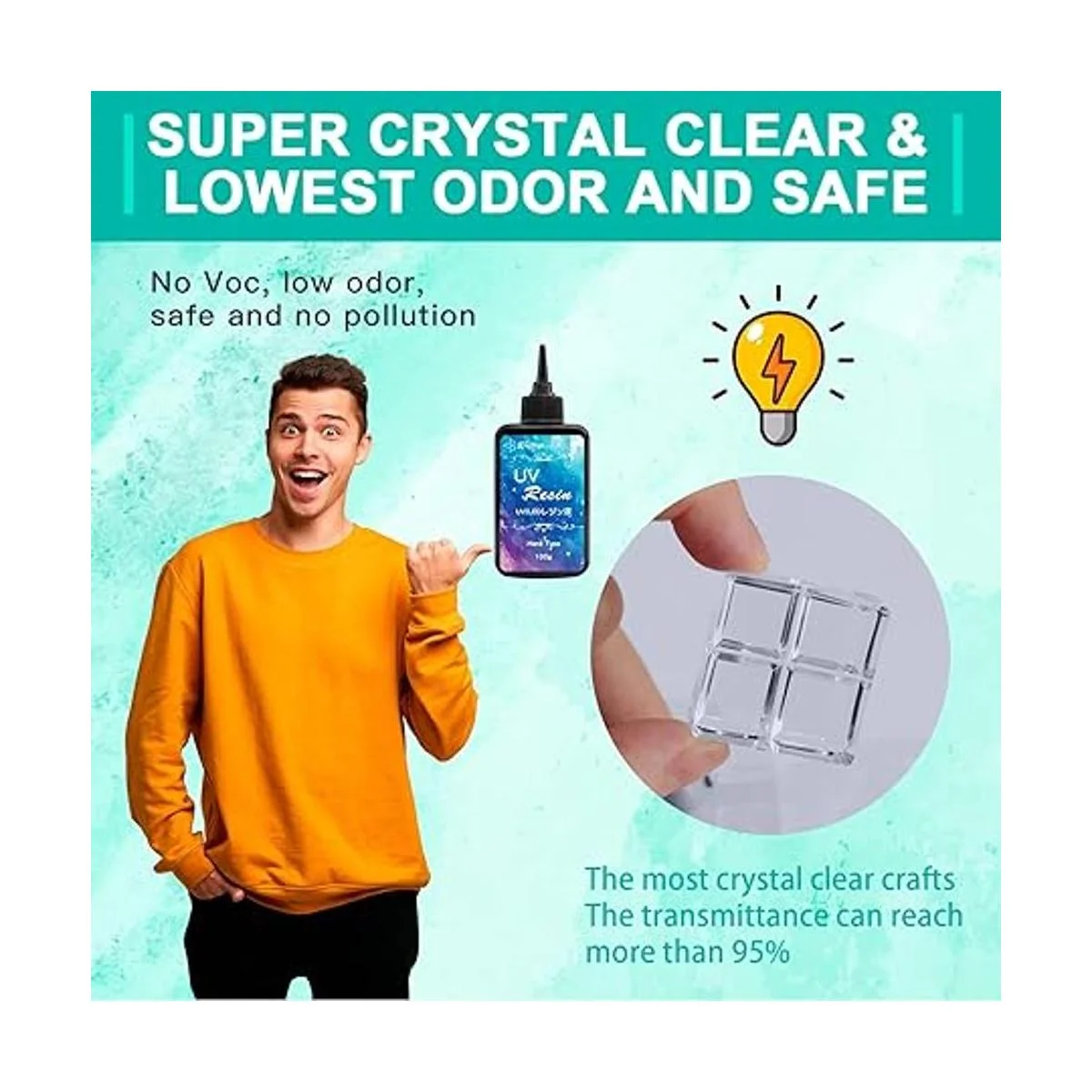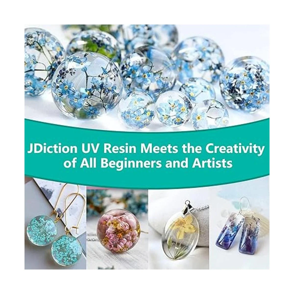 JDiction Nuevo kit de resina UV con luz, resina dura súper cristalina, curado por luz solar, kit de principiantes de resina UV para joyas, cúpula, revestimiento y fundición, manualidades de bricolaje