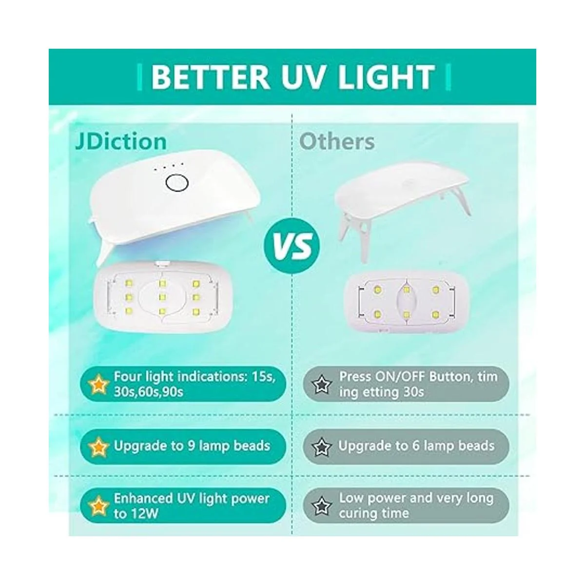 Luz UV mejorada Después de resumir las sugerencias y la experiencia del cliente, aumentamos las cuentas de la lámpara de la luz UV a 9, la potencia de la luz UV mejorada a 12 W, la radiación ultravioleta es más fuerte y uniforme; la luz UV mejorada tiene cuatro efectos de iluminación de 15, 30, 60 y 90 segundos, el cable USB equipado también se ha actualizado a 3.3 ft, te permite planificar mejor tu creación de manualidades, creando más sin preocupaciones.