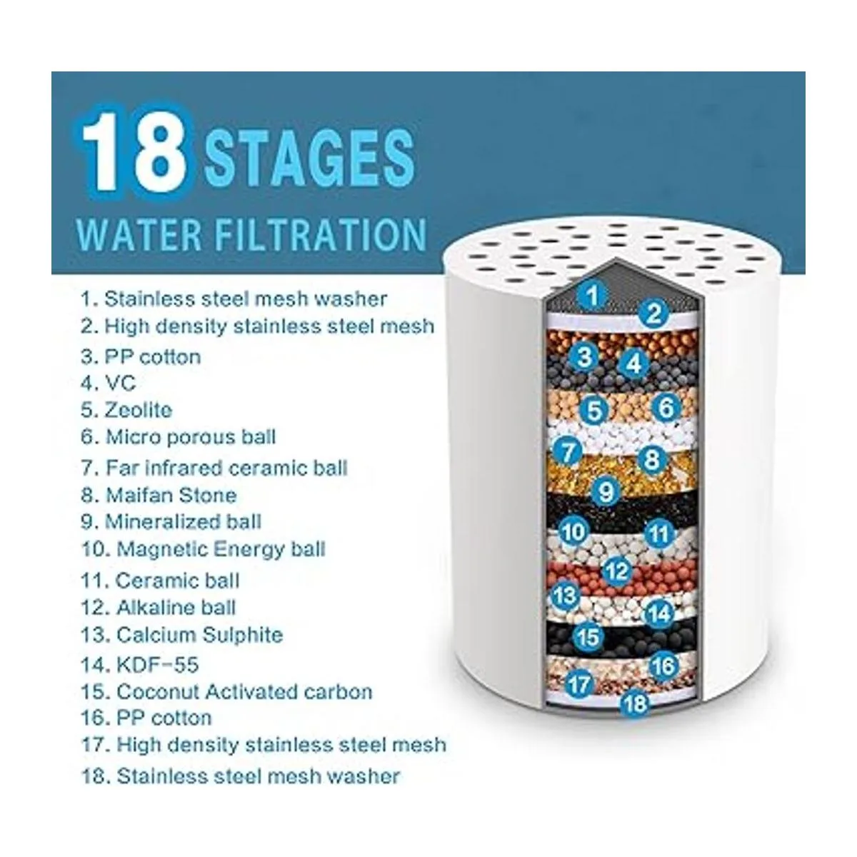 JDO Shower Filter Replacement Cartridge, Universal 18 Stage Shower Water Filter Cartridge for Hard Water to Remove Chlorine and Fluoride, Compatible with Any Shower Filter of Similar Design