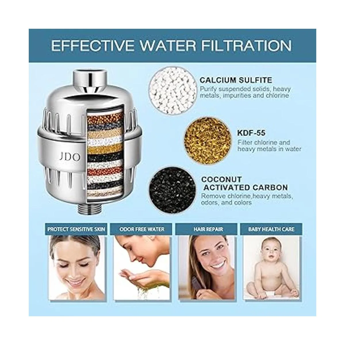 Healthy Water Body Care: JDO shower filter cartridge acts as a moisturizer, purifier, offering an effective cleanse to reduce the level of chlorine, fluoride, heavy metals, organic substances or other sediments, which help protect sensitive skin, improve nail condition, rejuvenate damaged hair and reduce unpleasant odors