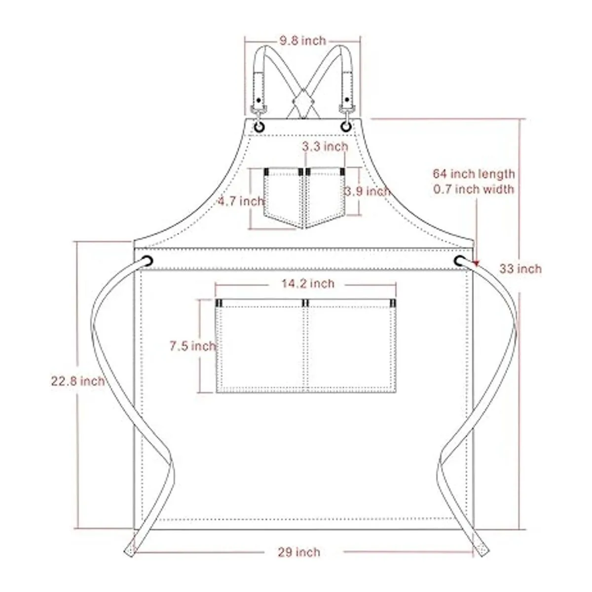 Tamaño: este delantal de cobertura completa es de aproximadamente 29.0 in de ancho y 33.0 in de alto para adultos unisex. Las largas correas cruzadas de la espalda permiten una amplia gama de ajustes de hasta 44 pulgadas de cintura.