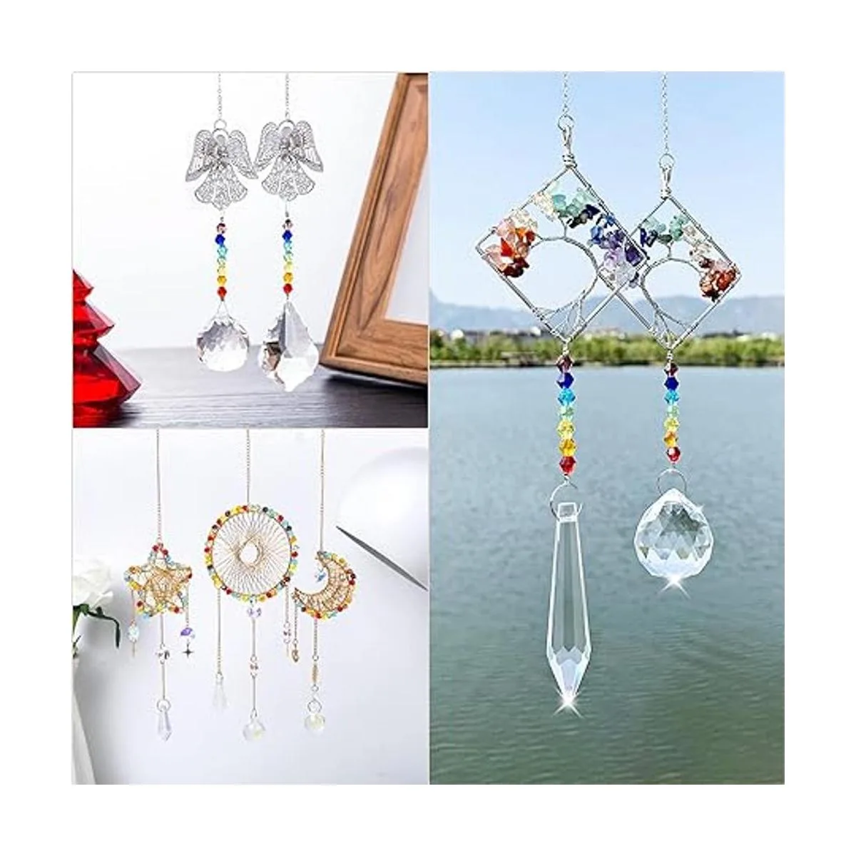 Aplicación: las cuentas de cristal multifacéticas para hacer joyas tienen amplias aplicaciones, como hacer pulseras, collares, aretes, anillos, tobilleras, campanillas de viento, adornos de muñecas, llaveros, dijes de teléfono de cuentas, adornos de coche, atrapasueños, cortinas de cuentas, manualidades para el cabello, ropa, zapatos y sombreros o bolsas y todo tipo de proyectos de cuentas de bricolaje.
