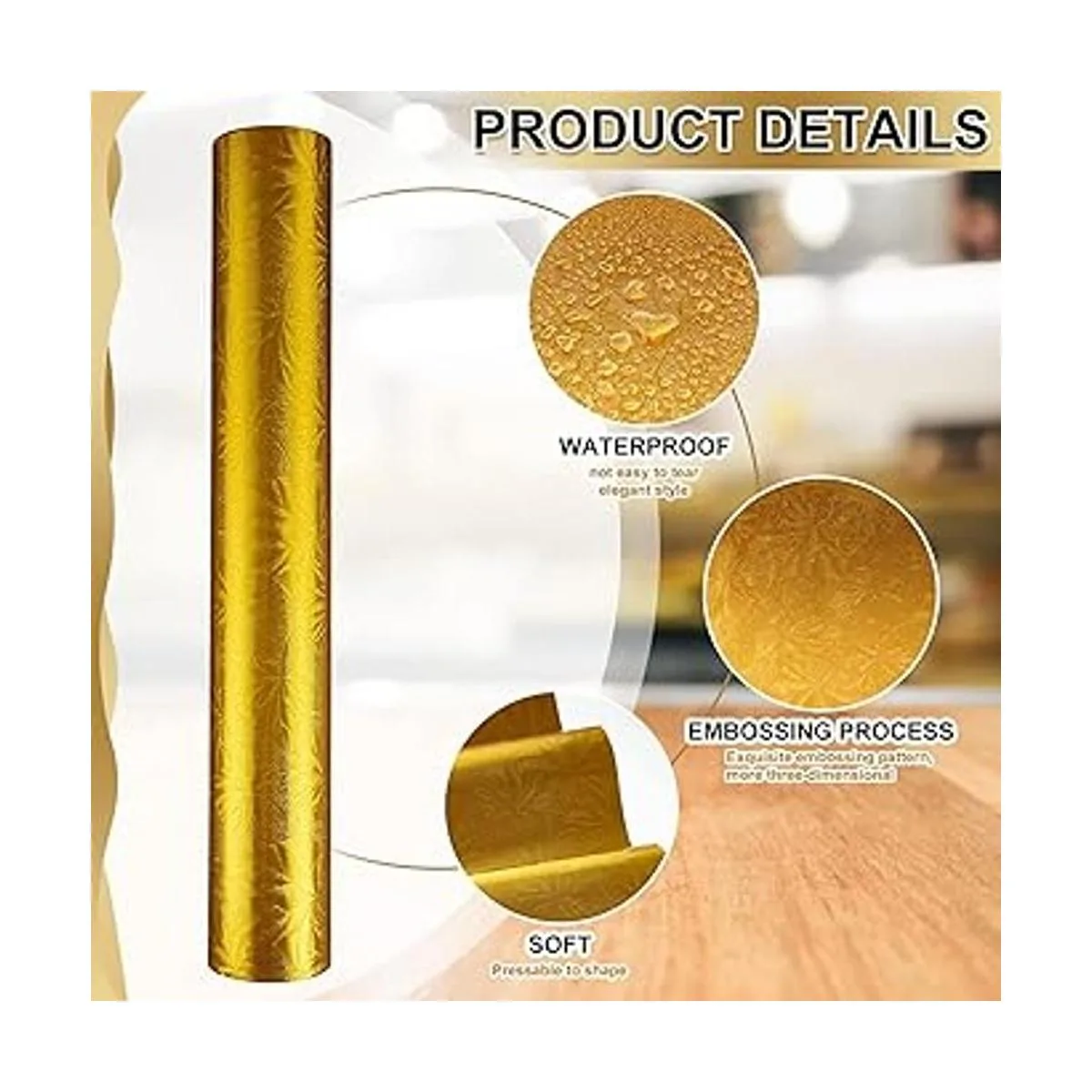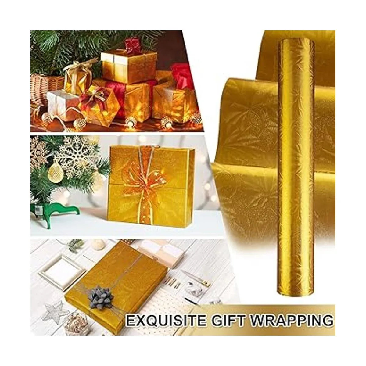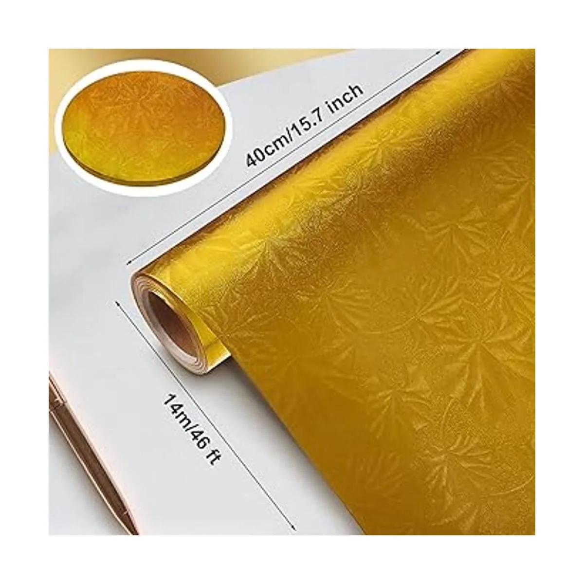 Jecery Papel de aluminio floral en relieve, papel de regalo metálico dorado para manualidades, álbumes de recortes, tablero de tartas, tambores de tartas, envoltura de regalo, 15.7 pulgadas, 46 pies