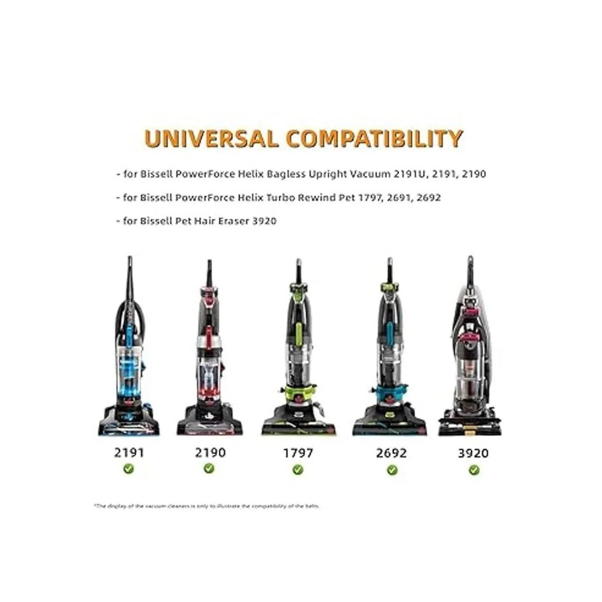 Amplia compatibilidad: estos cinturones se ajustan perfectamente a Bissell PowerForce Helix Aspiradora vertical sin bolsa 2191U, 2191, 2190, 1700, 1240, 12B1; PowerForce Helix Turbo Rewind Pet 1797, 2691, 2692, 68C7, 68C71 y borrador de pelo de mascotas serie 3920 es.