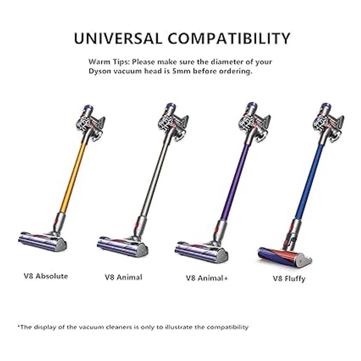 Compatibilidad exacta: este burshroll es compatible con Dyson V8 Absolute, V8 Animal y V8 Total Clean. Consejos: asegúrate de que el diámetro de tu cabezal de aspiradora Dyson es de 0.197 in antes de realizar el pedido