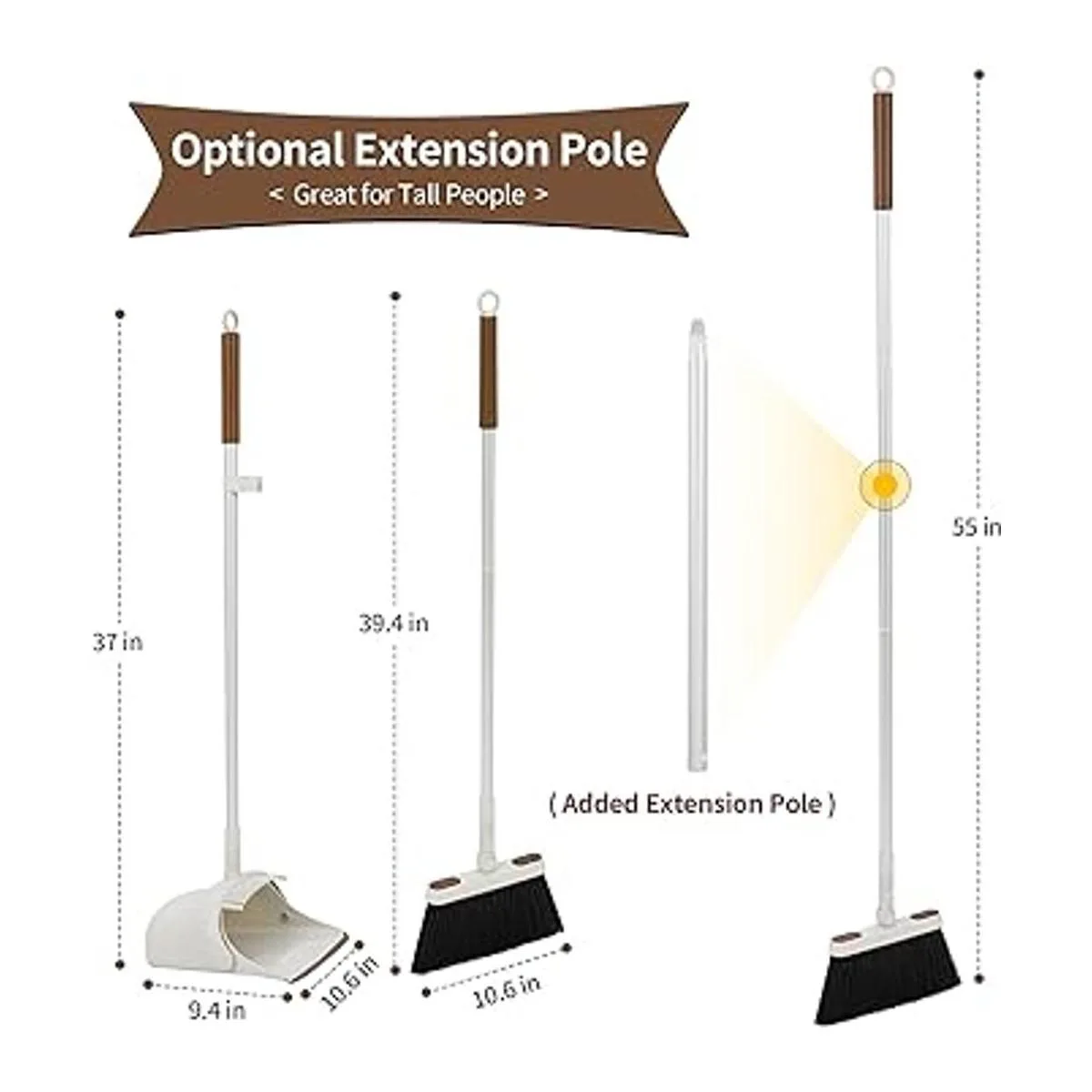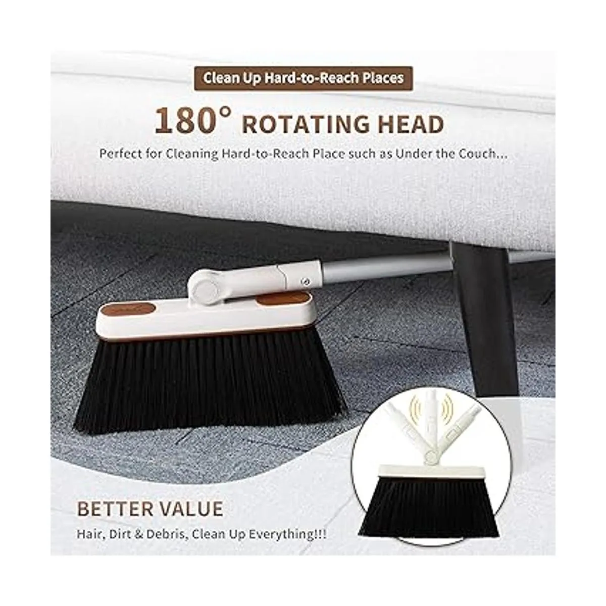 Limpieza sin doblar: el mango de la escoba puede ser de hasta 55 pulgadas de longitud, evitando doblarse al barrer el suelo. Puedes utilizar tantos postes de extensión en la escoba como sea necesario para llegar a lugares altos.