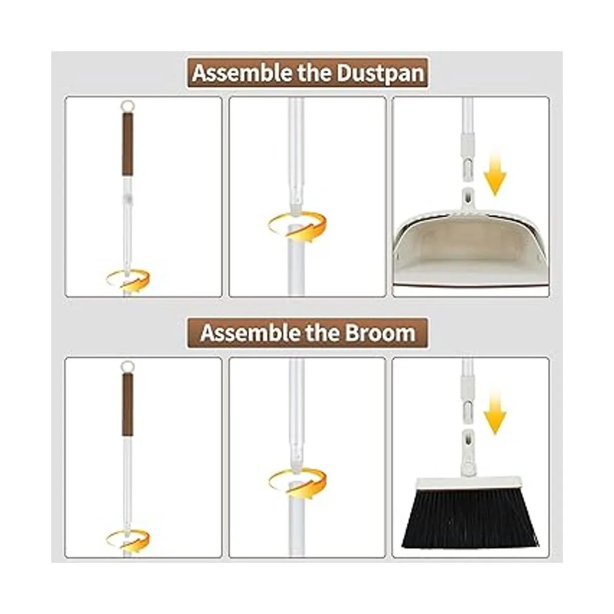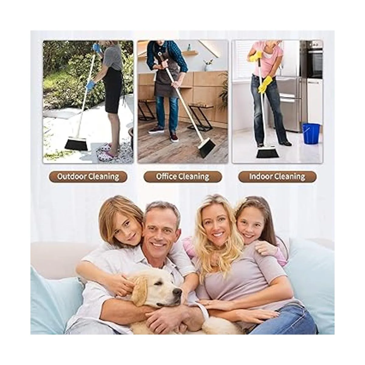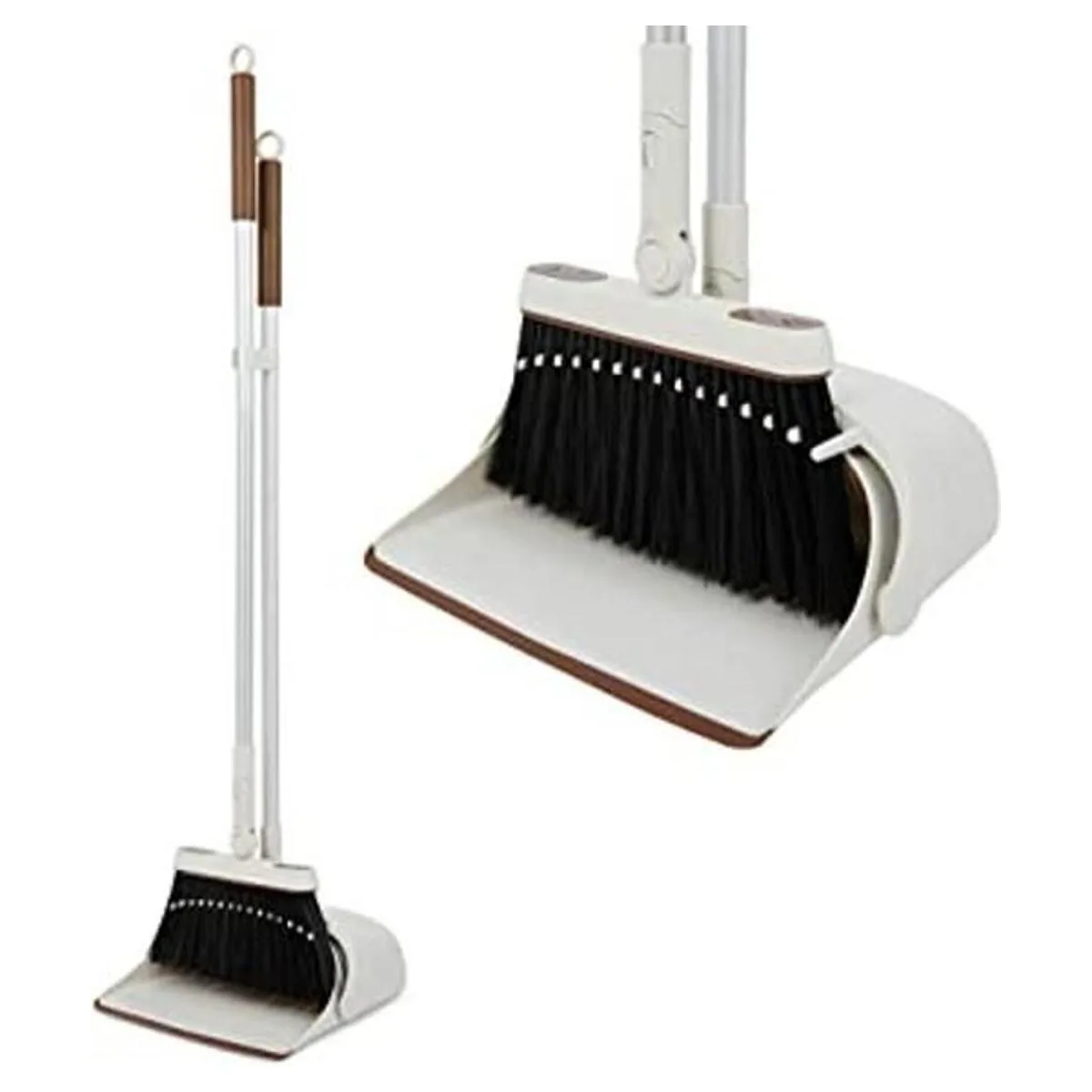 Jekayla Juego de escoba y recogedor para el hogar con mango de largo de 54 pulgadas, vertical y ligero, combo de cepillo para cocina, habitación, oficina, vestíbulo, limpieza de pisos, marrón y gris