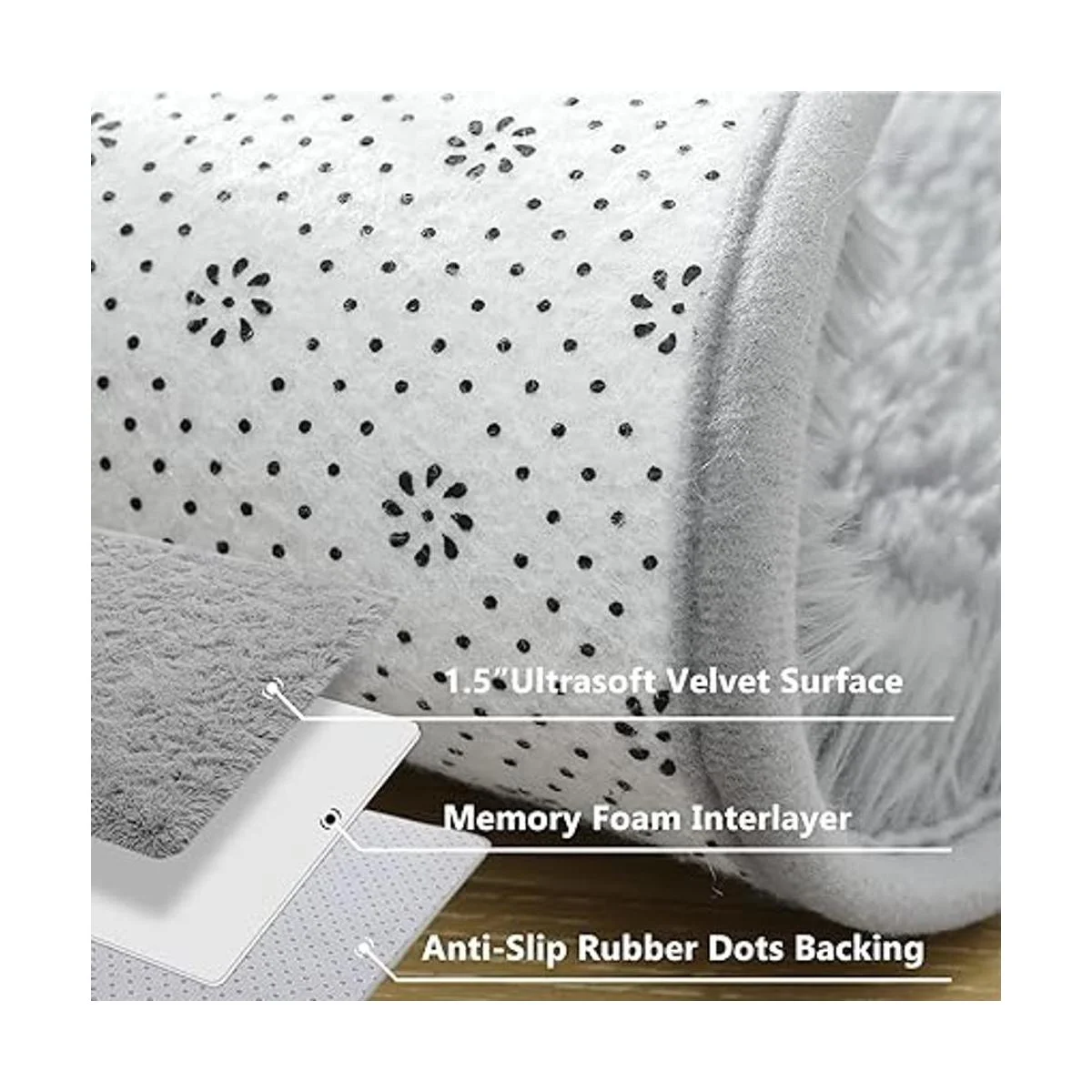 Alfombra mejorada hecha de terciopelo de felpa: las cómodas alfombras de piel sintética esponjosa proporcionan una sensación suave al tacto, lo que te permite disfrutar de suavidad y comodidad. La gruesa capa intermedia de espuma viscoelástica de las alfombras añade amortiguación adicional, protegiendo a ti y a tus hijos, mascotas del suelo duro y frío