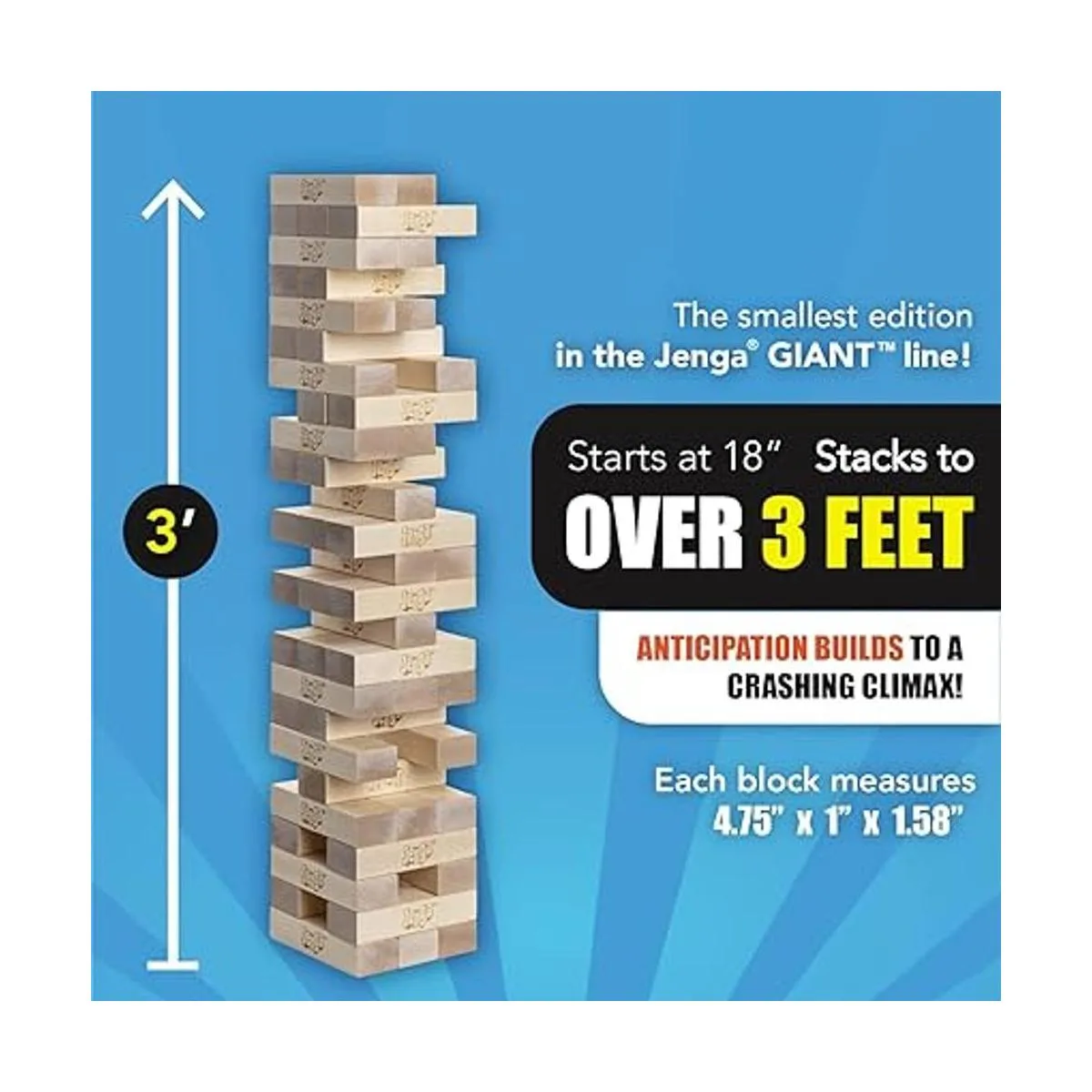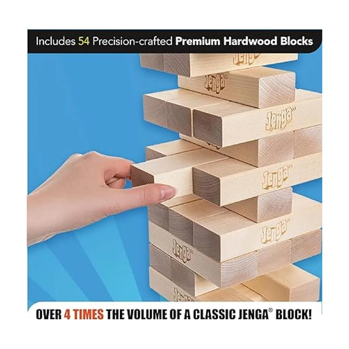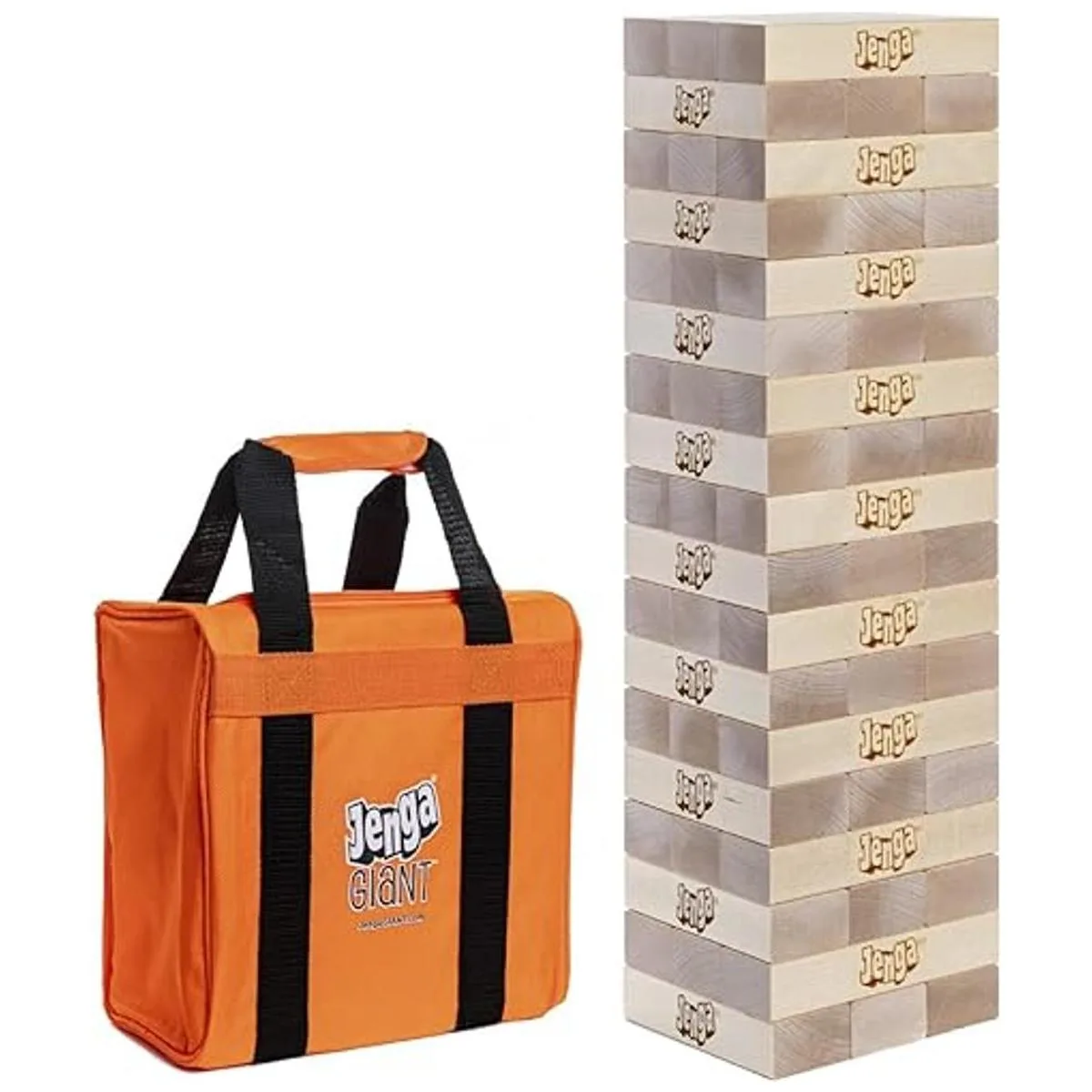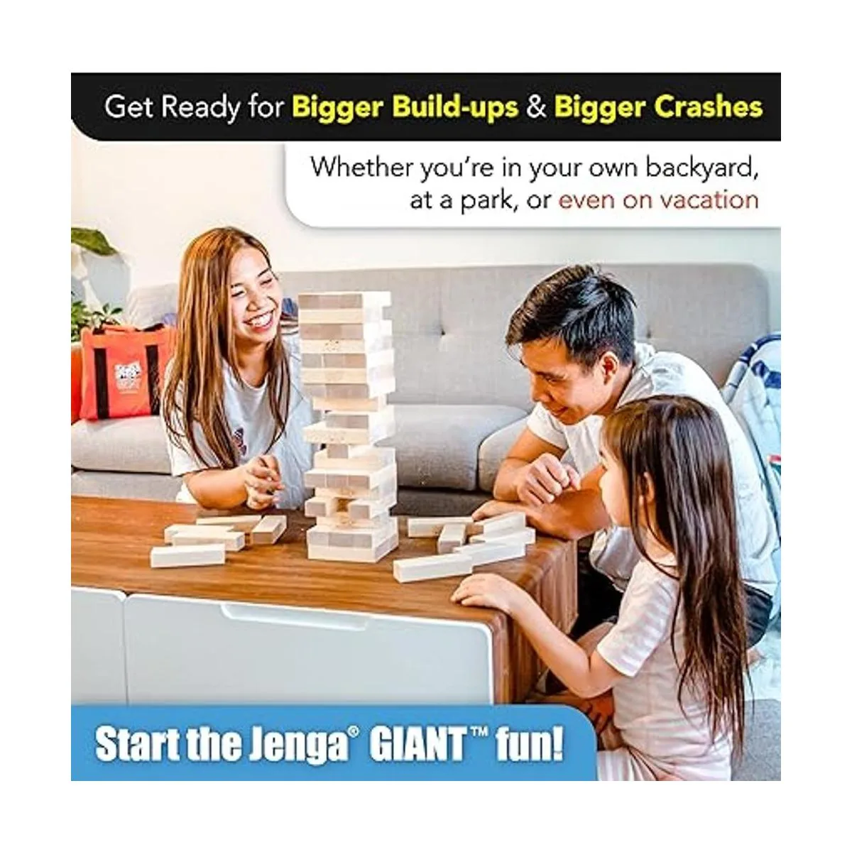 Jenga Giant JS4 El juego Jenga de gran tamaño se apila a más de 3 pies en juego, incluye bolsa de transporte resistente, bloques de madera dura resistentes a las astillas de primera calidad, juego de marca Jenga de confianza hecho a mano con precisión