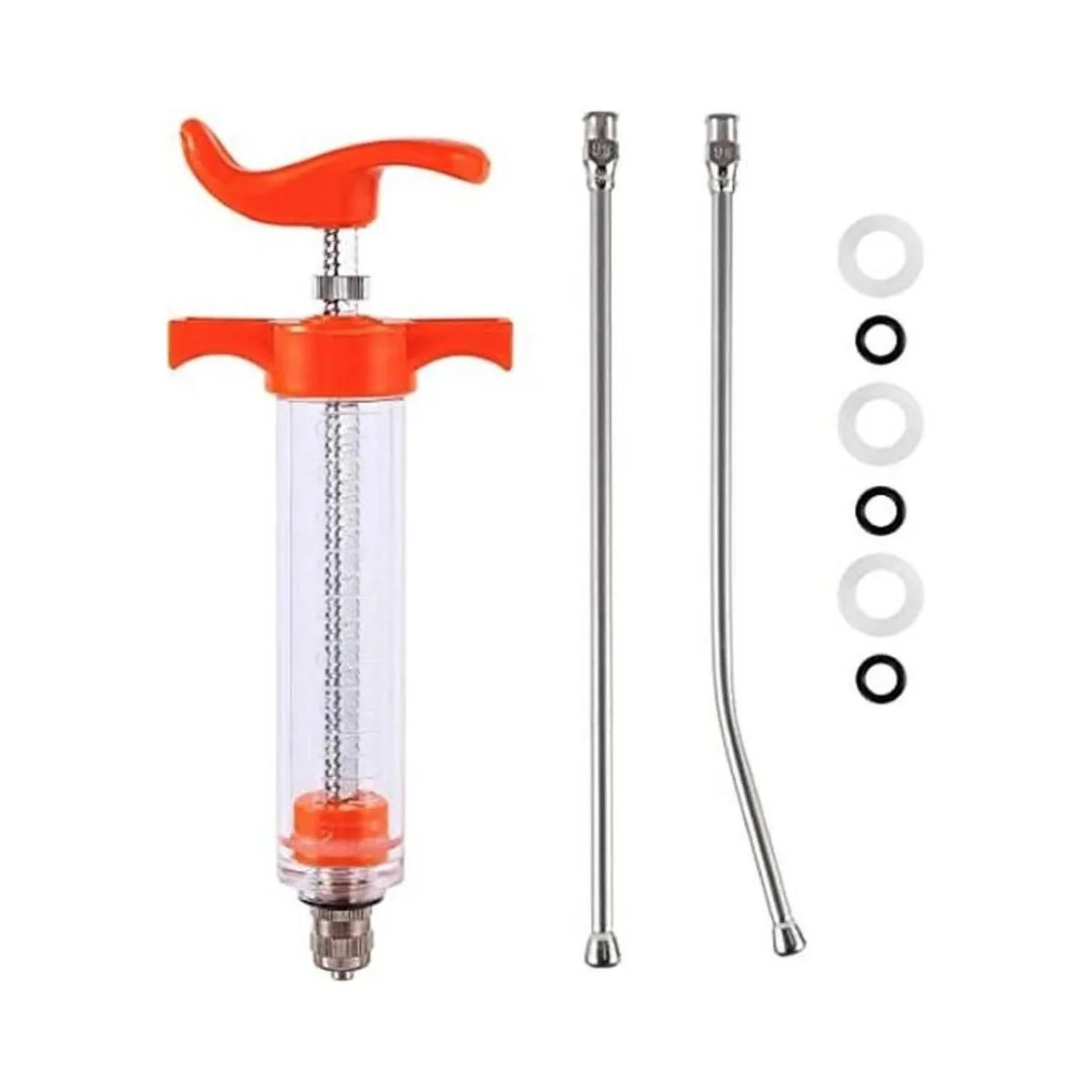 Materiales de alta calidad: la jeringa de cabra está hecha de calidad y estructura resistente, la boquilla de empapado adopta material de metal resistente a la corrosión, se puede aplicar durante mucho tiempo. Todas las piezas se pueden conectar herméticamente, pero también se desmonta fácilmente para limpiar.