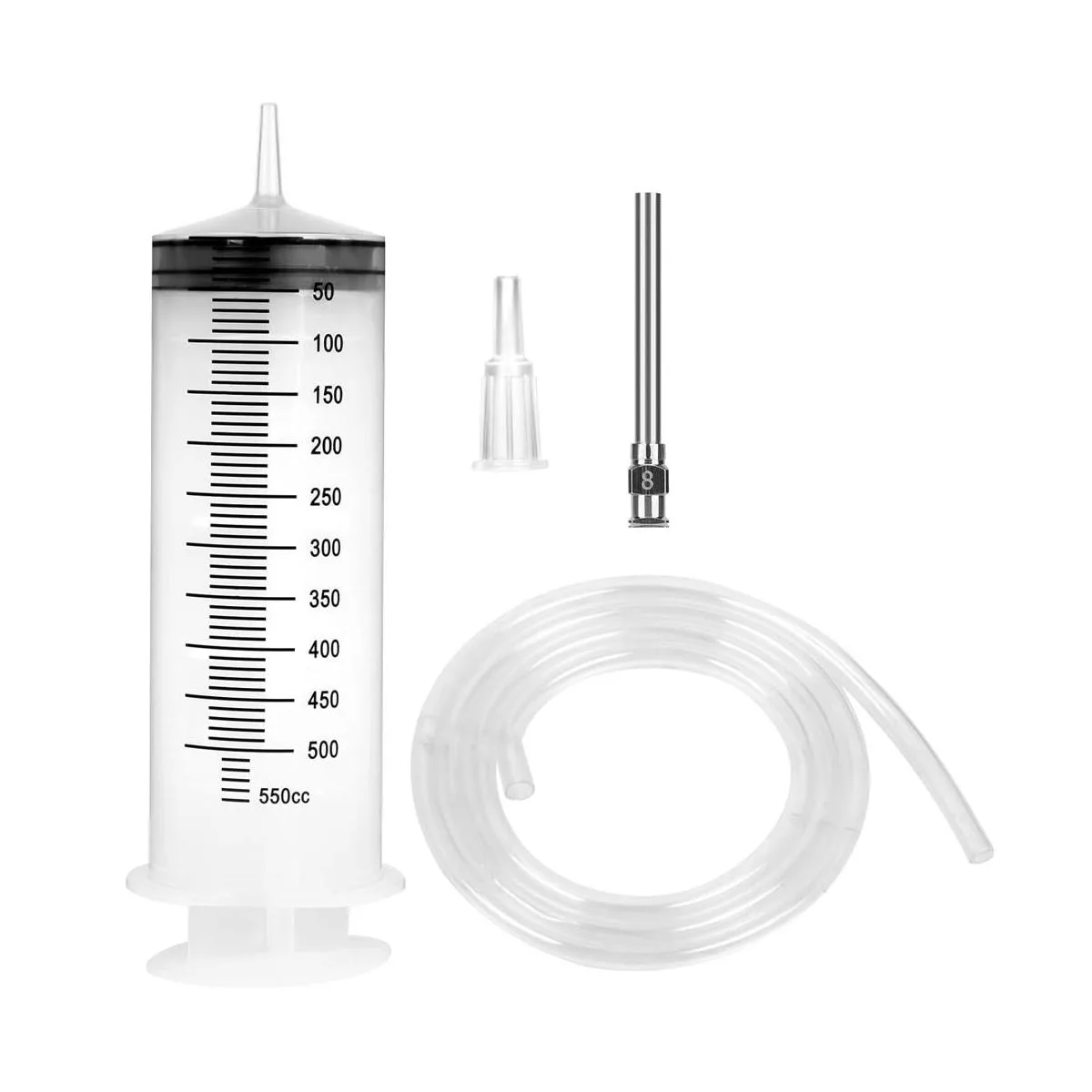 Jeringa grande de 16.9 fl oz con tubo de 27.6 pulgadas, estéril e individual, jeringa de jardín de plástico para líquidos, pintura, resina epoxi, aceite, plantas de riego, recarga