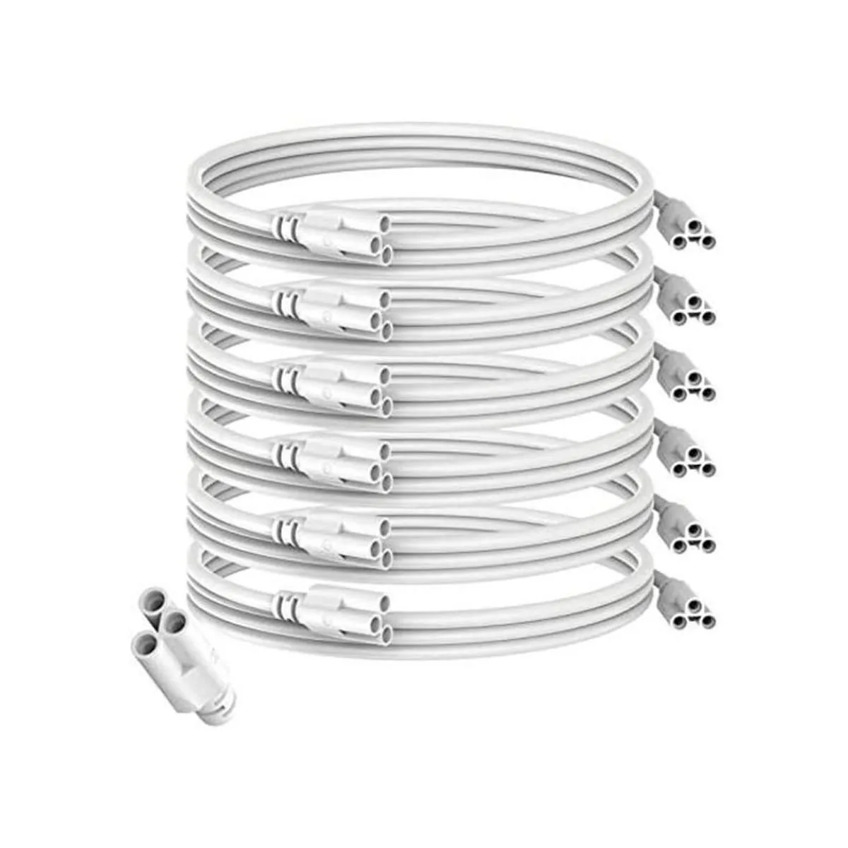 JESLED T5 T8 cables de extensión, cable de cable de cable acoplable de 4.9 ft, cable de alimentación extendido de 3 puntas para luz de tubo LED integrada, iluminación de garaje de una sola tienda, luces debajo del gabinete 6P