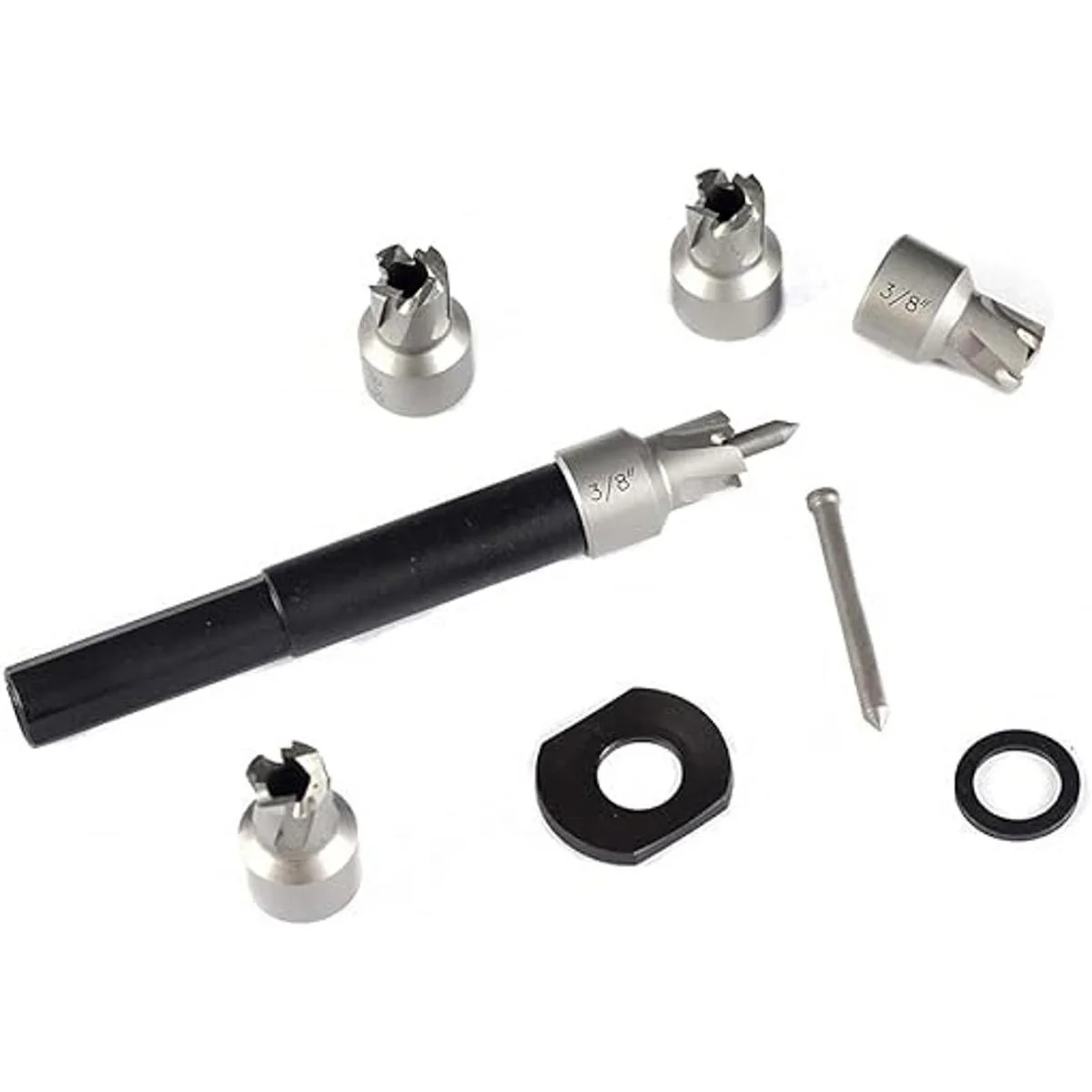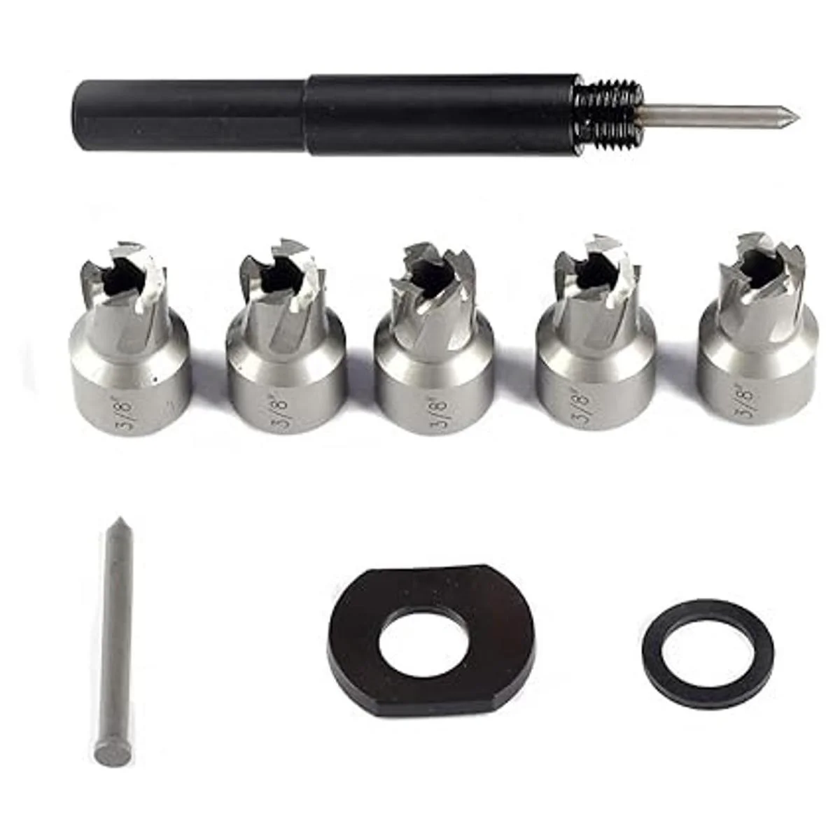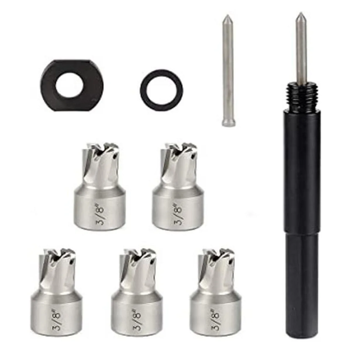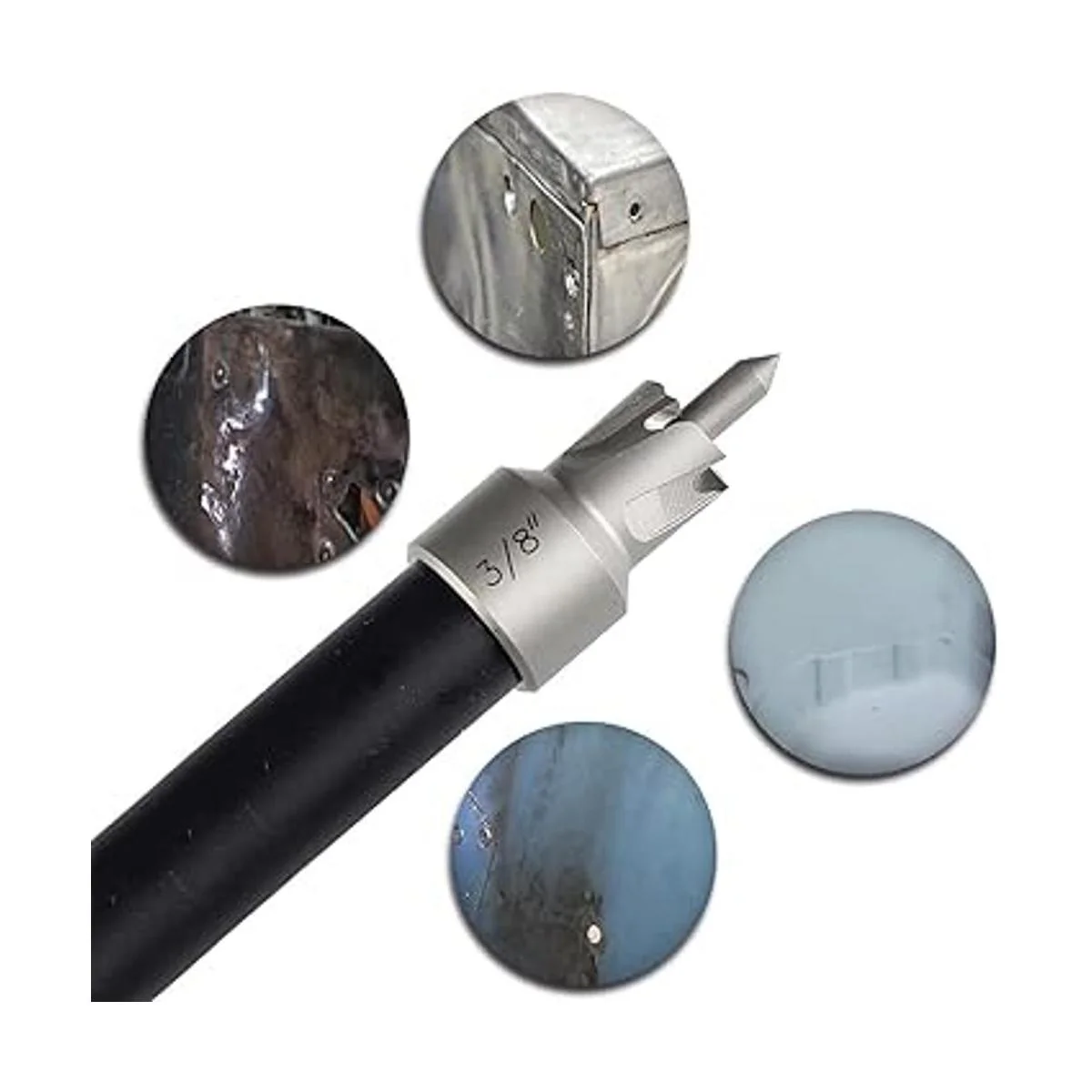 Incluye: 5 cortadores de soldadura por puntos de 3/8 pulgadas cuchillas de corte resistentes y pin central adicional para un uso a largo plazo.