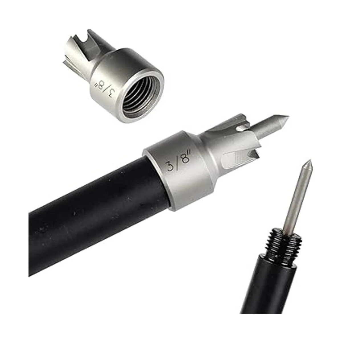 3/8 pulgadas: se adapta a portabrocas de mano de 3/8 pulgadas o tamaño más grande y la aguja con resorte ayuda a guiar las cuchillas de corte.