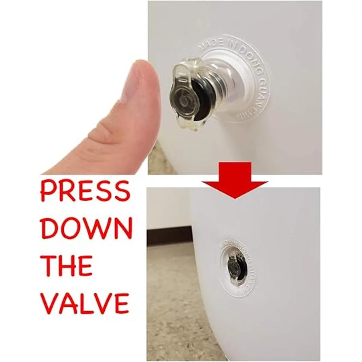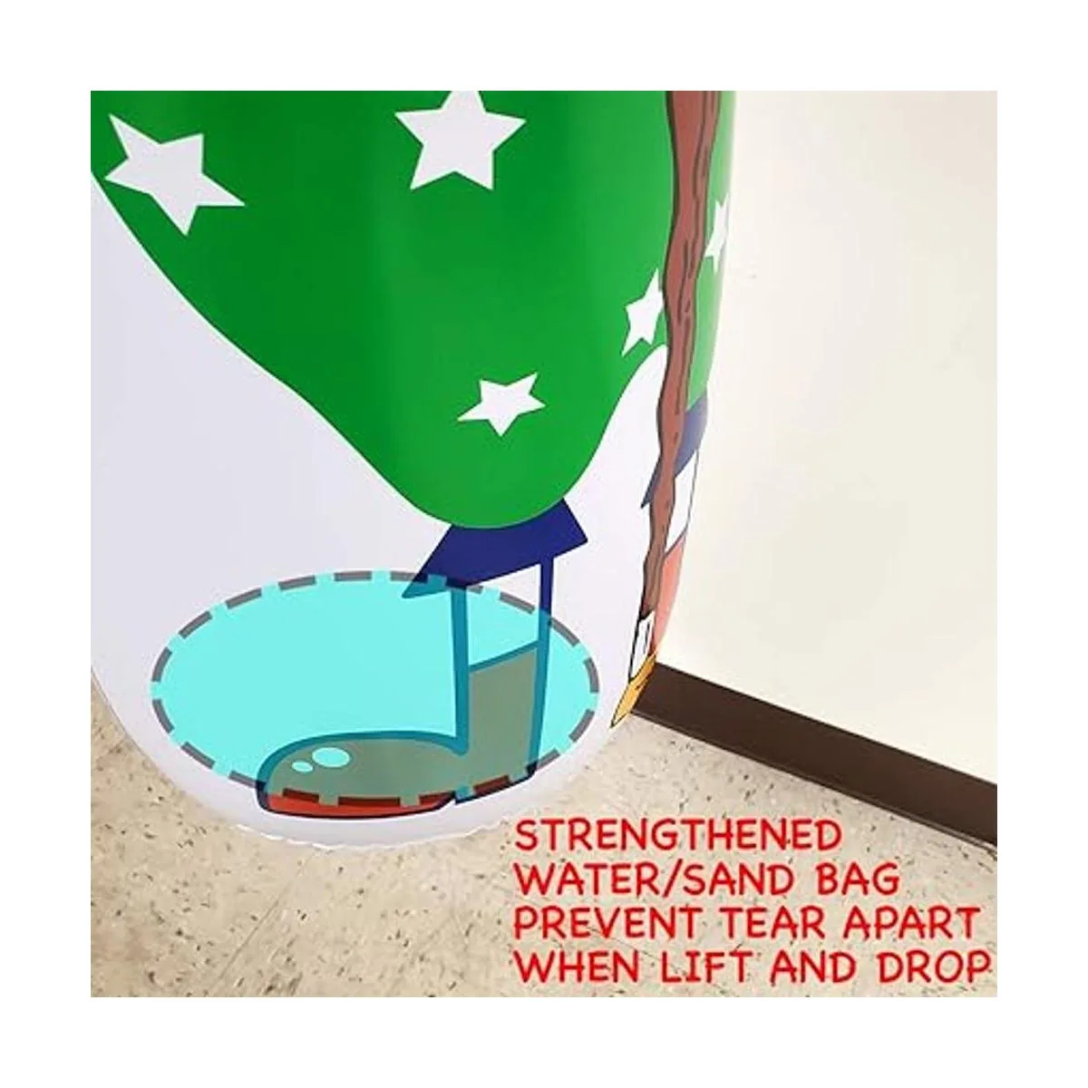 Configuración: 1 Llena la válvula inferior con 2 litros de agua o 4.4 lbs de arena y luego haz que la tapa y la válvula estén firmemente sentados 2 Infla completamente el saco de boxeo desde la válvula de aire lateral