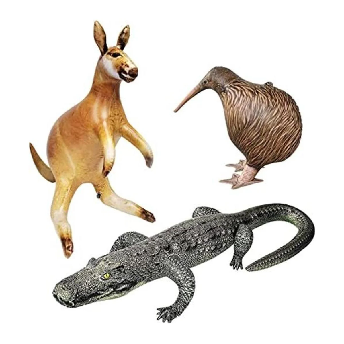 Contenido: canguro inflable Jet Creations 1 pájaro kiwi inflable Jet Creations 1 cocodrilo inflable Jet Creations 1 hoja de instrucciones 1