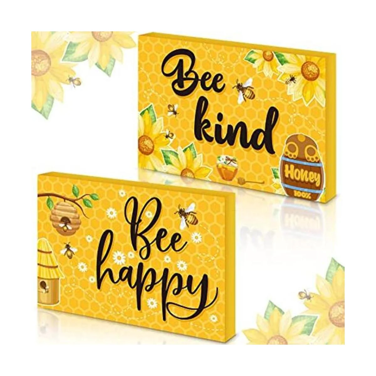 Jetec 2 piezas de letrero de madera feliz de abeja, decoración de madera rústica de abeja, letrero de madera de abeja, letrero de madera de abeja, letrero de caja de abeja, placa de madera feliz para decoración de puerta del hogar