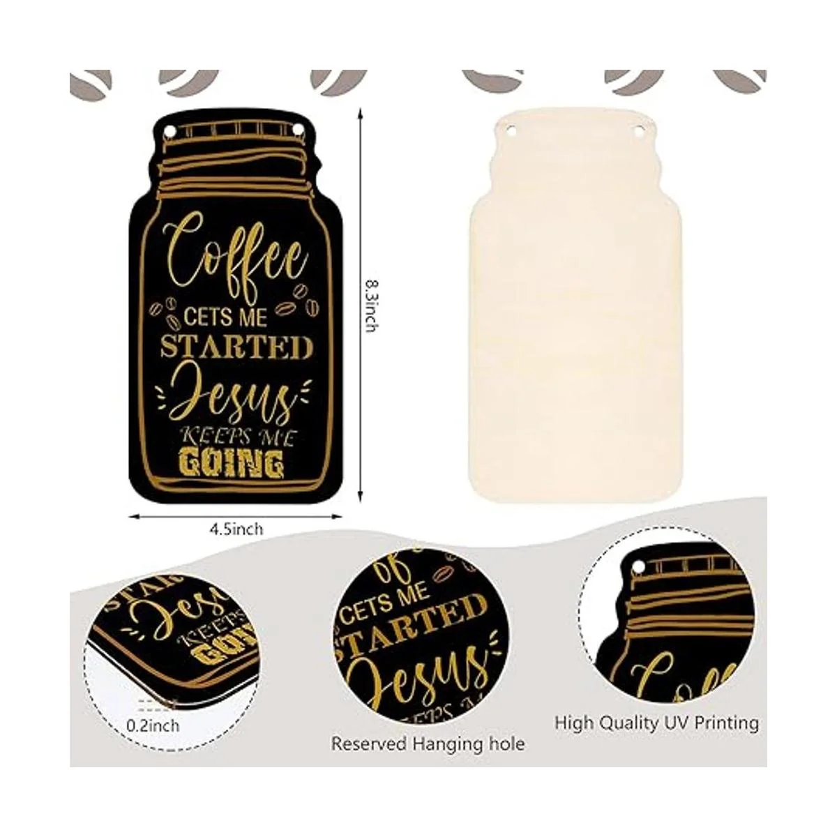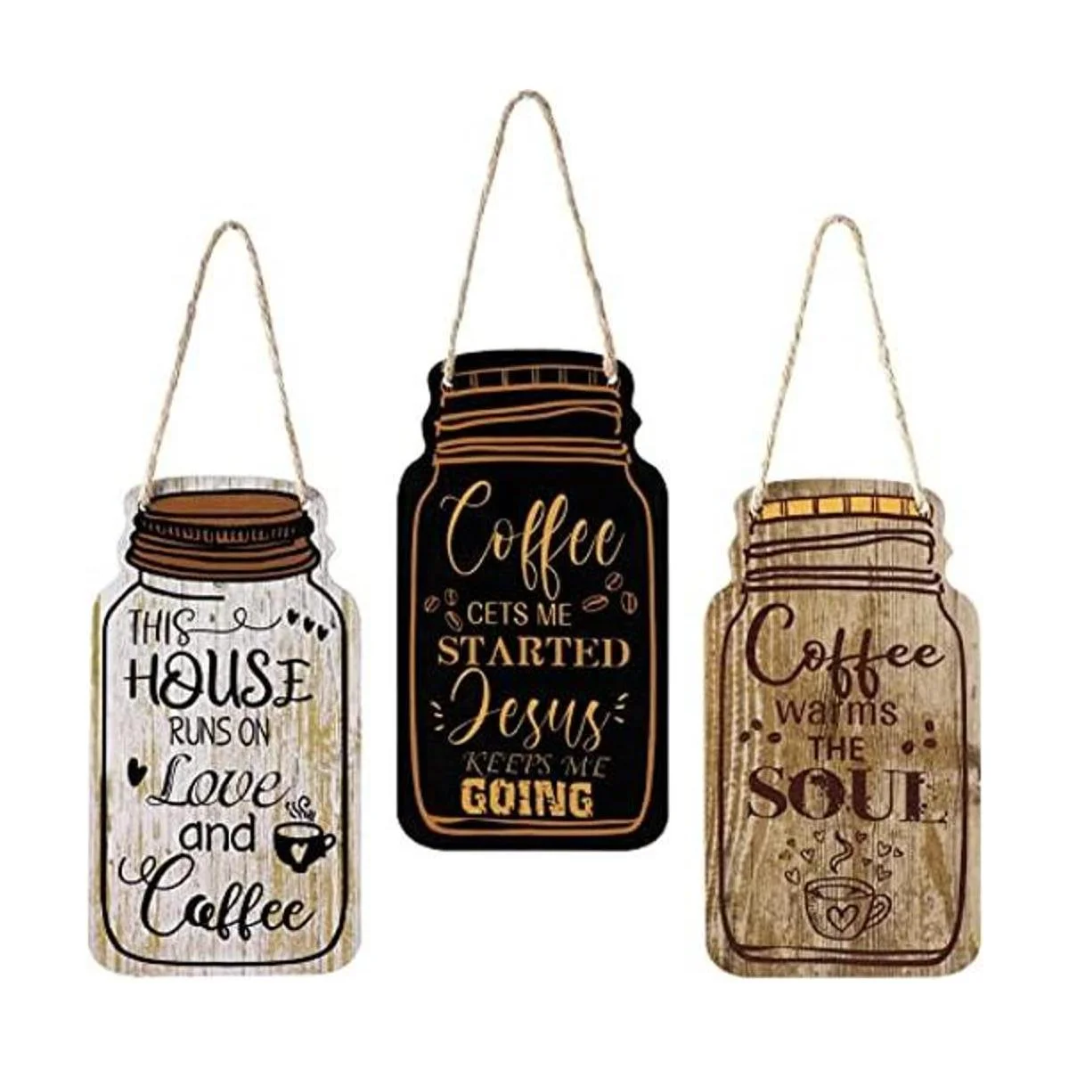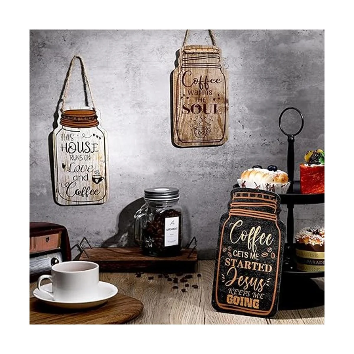 Jetec 3 letreros de madera para café, tarro de masón, placa para colgar en la pared, decoración de café de granja, letrero de decoración de barra de café para decoración de cocina, oficina, hogar, mesa de pared estilo sencillo