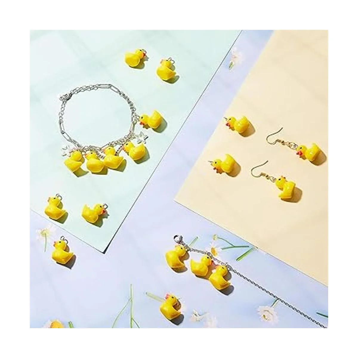 Jetec 40 piezas de dijes de slime de patos de resina, dijes de pato de resina, dijes de pato para bricolaje, dijes de pato para pulseras, collares, aretes, llaveros y manualidades 40 piezas, Resina, metal, 1