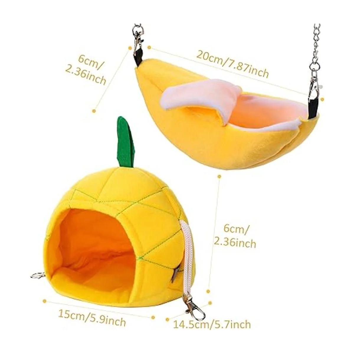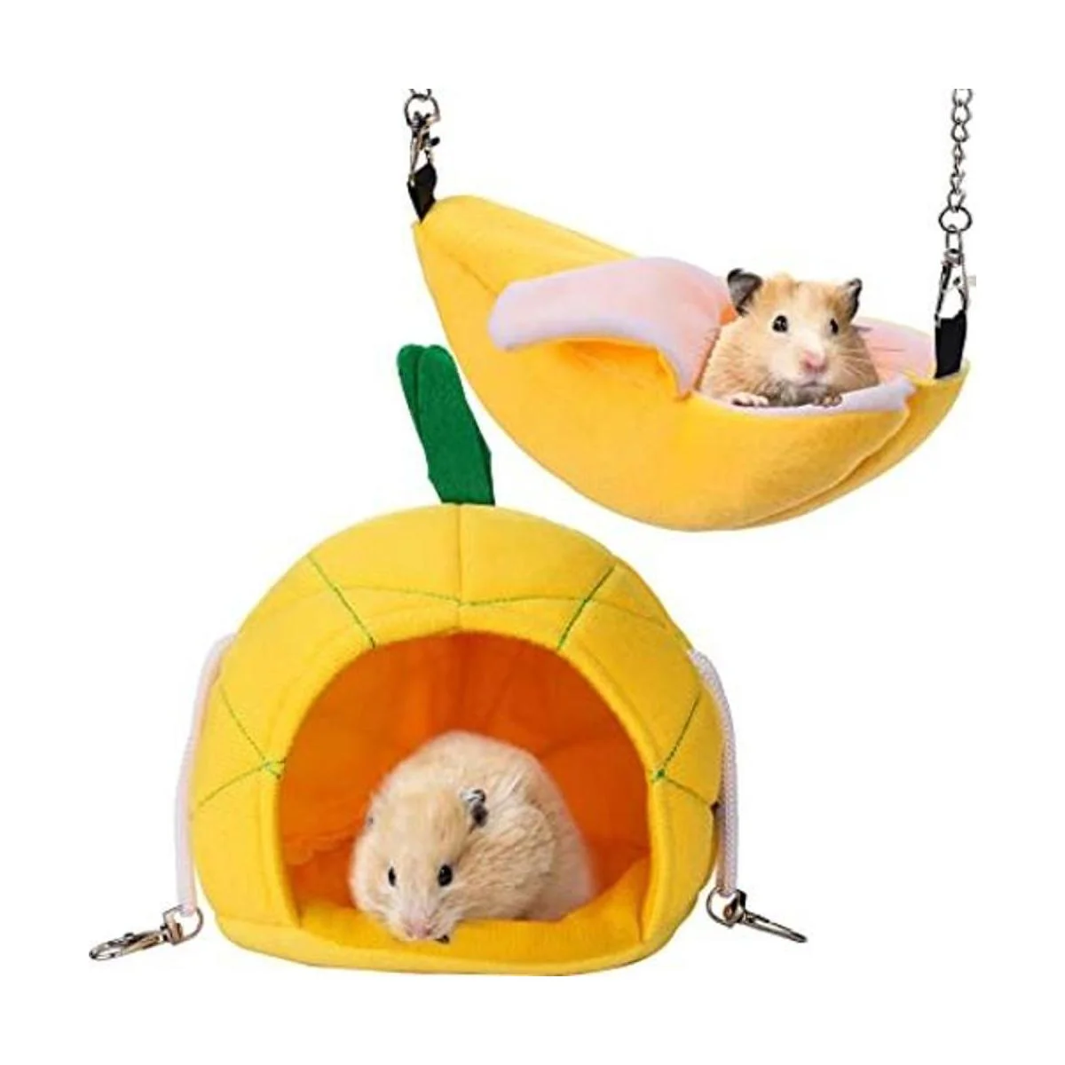 Bonita forma: la hamaca para hámster se caracteriza por una forma de plátano y forma de piña; el aspecto realista hace que sea adorable e interesante, una habitación cómoda para tus mascotas y una bonita decoración para tu hogar