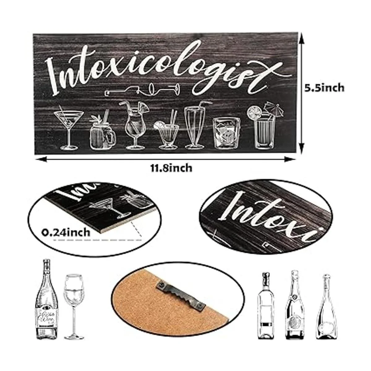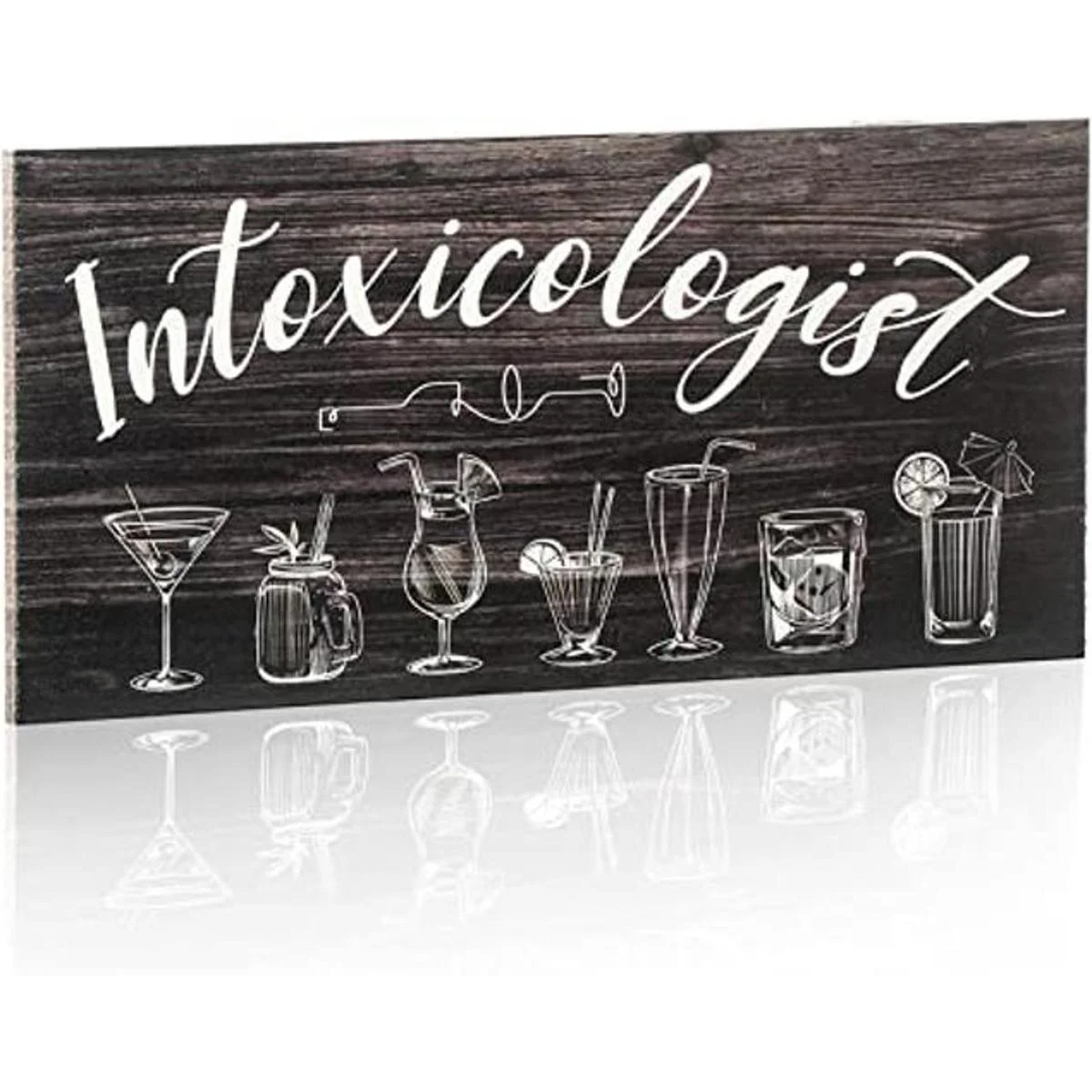 Jetec Intoxicologist Wood Bar Decor Funny Bar Sign con patrones de bebidas Placa de madera Letrero Arte de la pared Pub Bar Decoración o Decoración del hogar