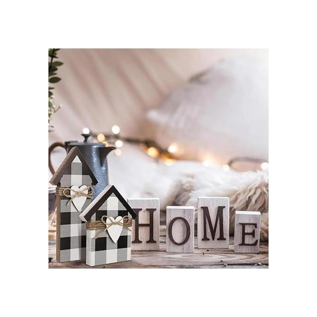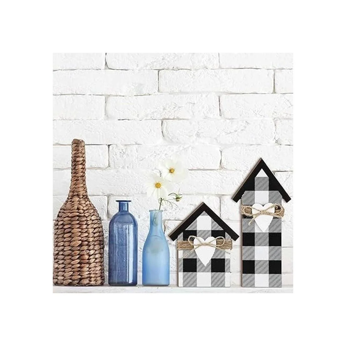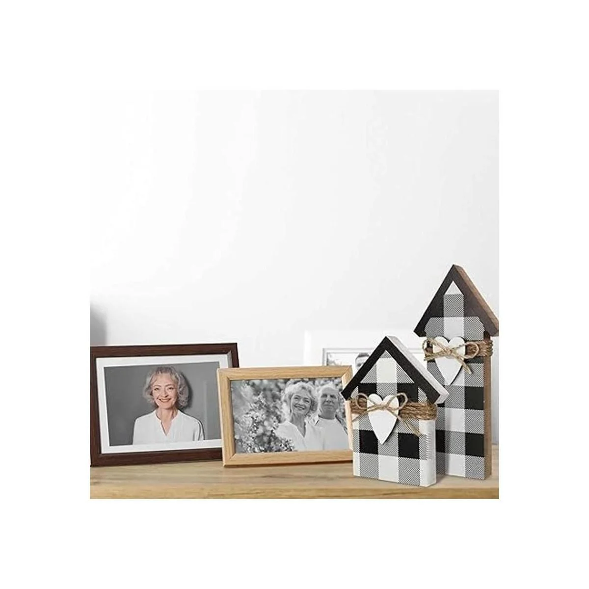Fiable y fuerte: estas decoraciones de cuadros de búfalo con forma de casa están hechas de material de madera natural con textura suave, duradero y estable, que se puede colocar en la mesa de forma estable, y no se decolora ni se rompe fácilmente, por lo que puedes aplicarlas durante mucho tiempo