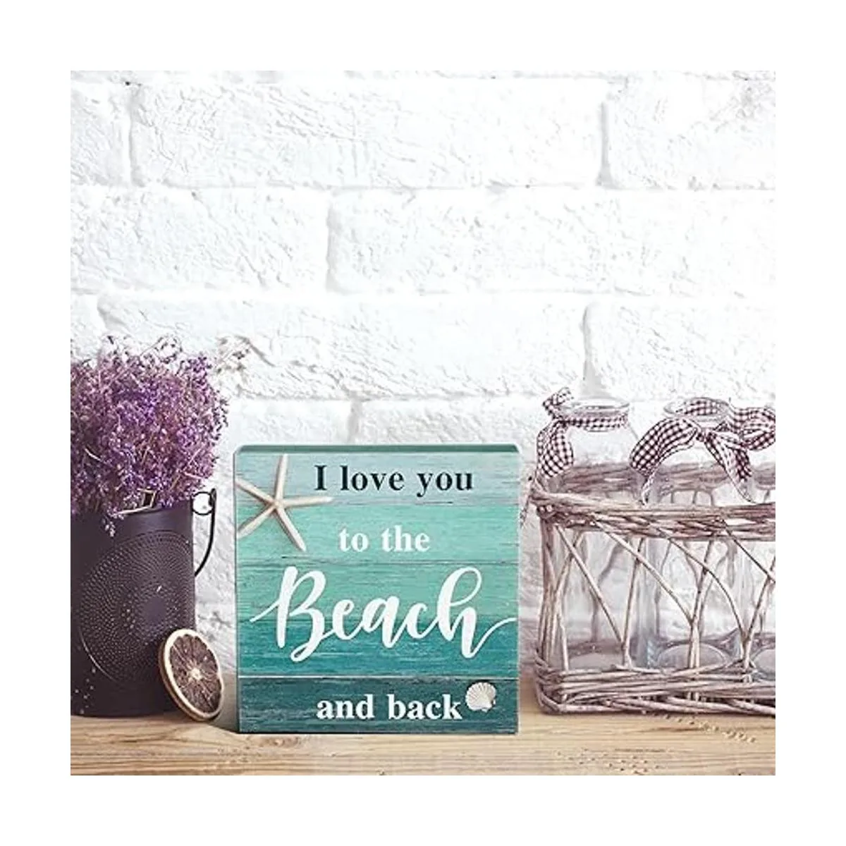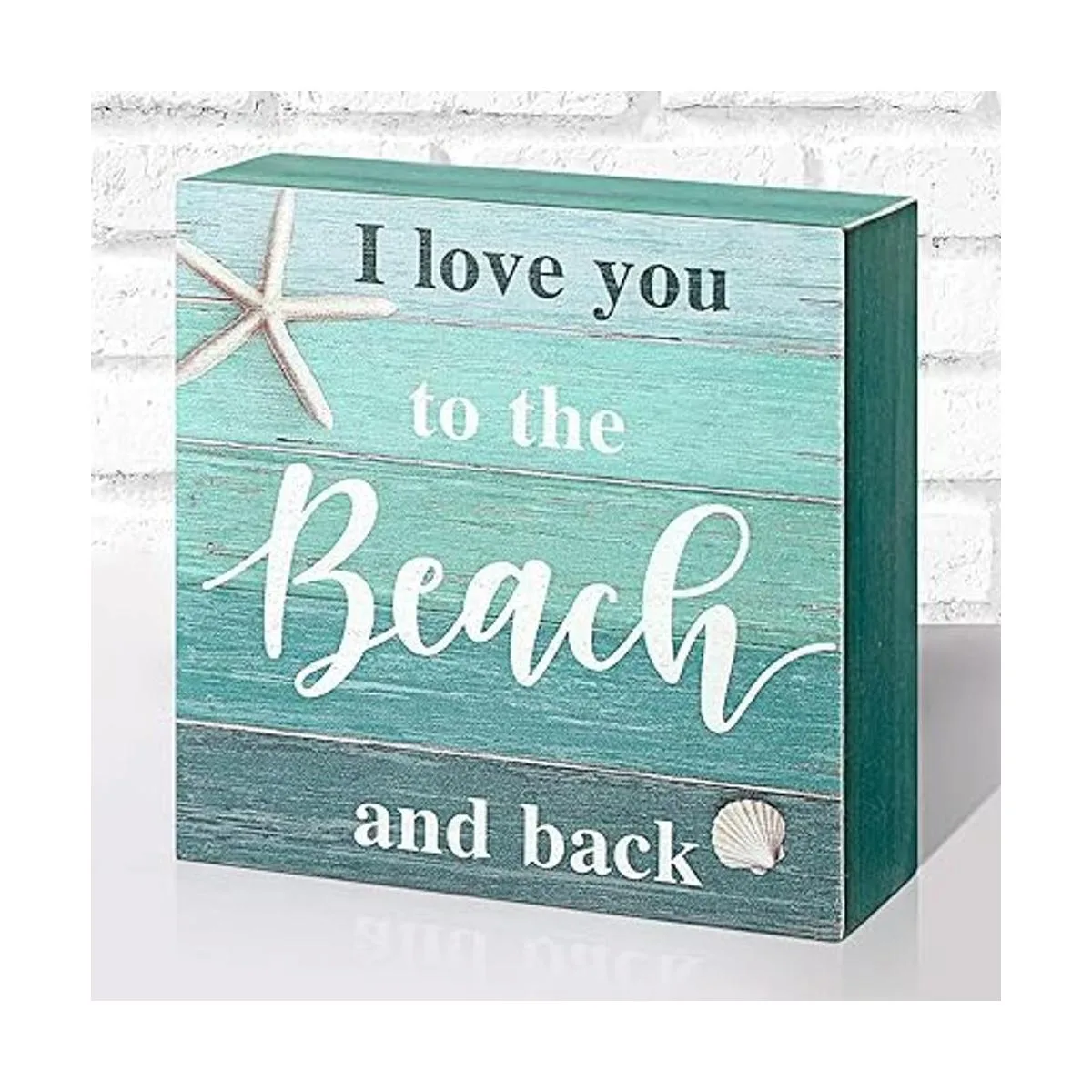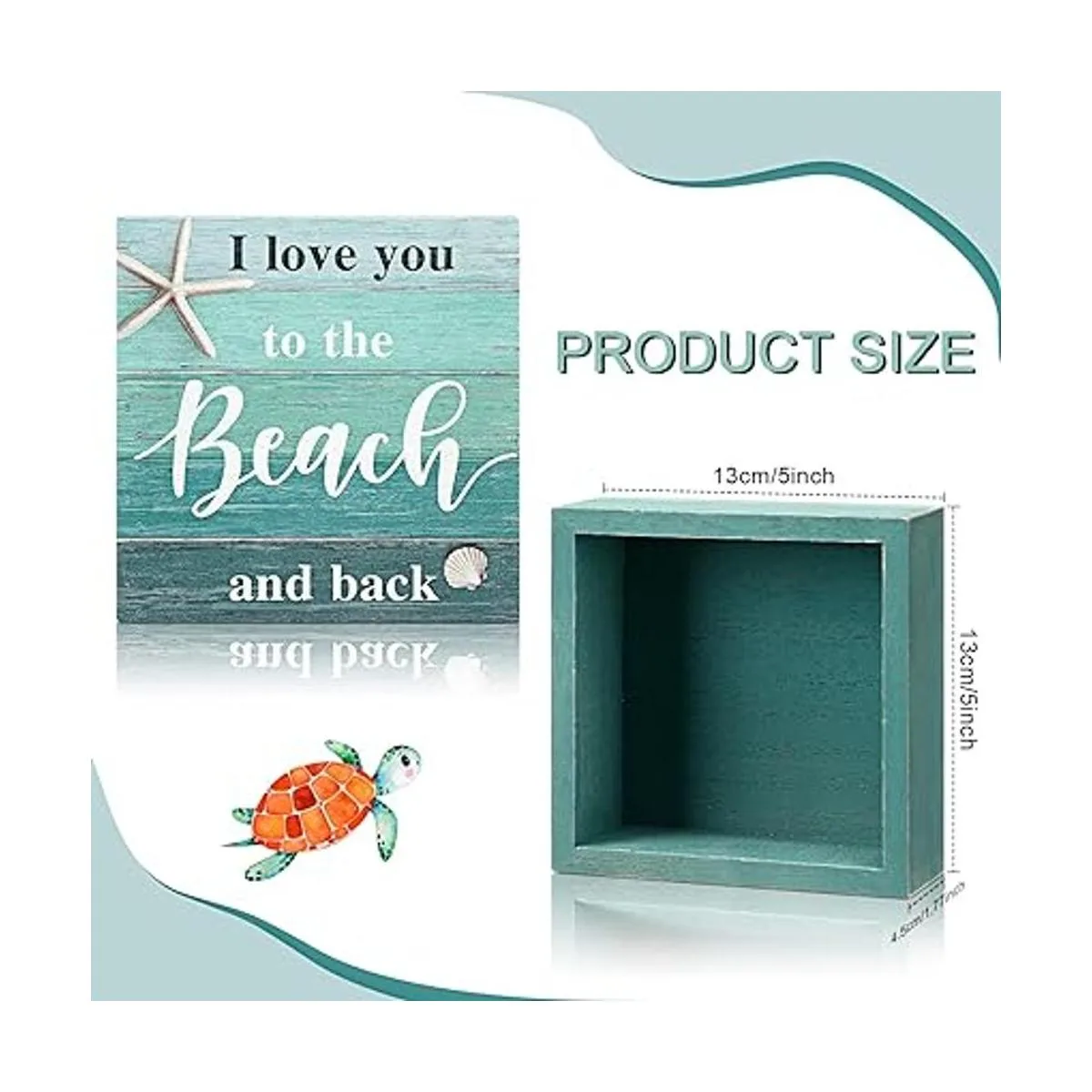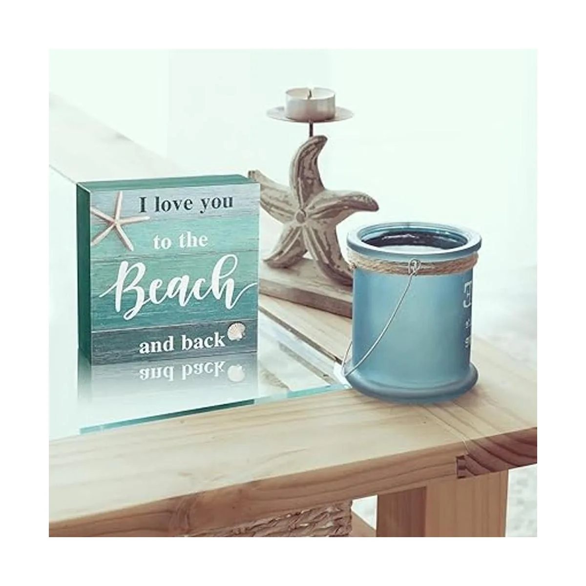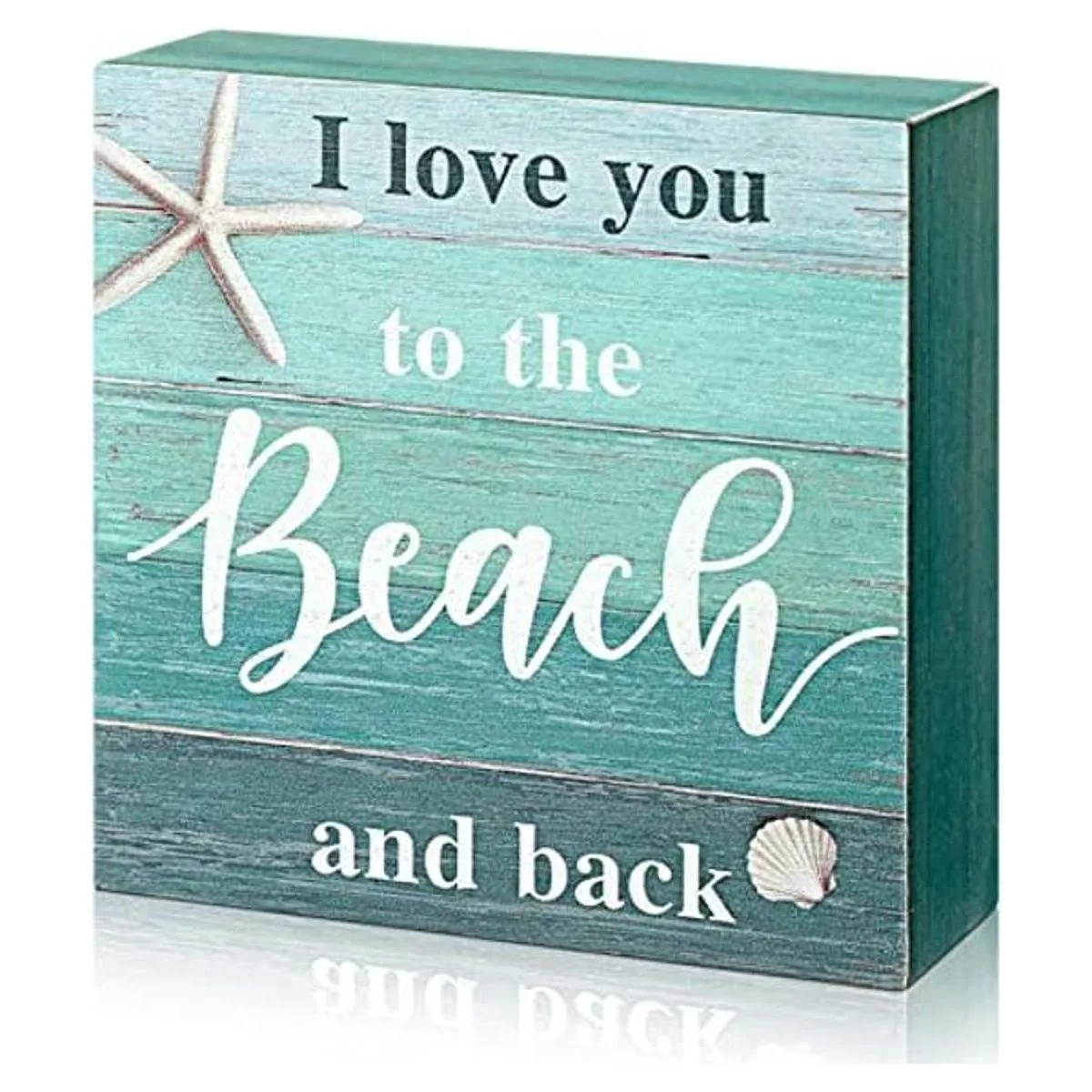 Jetec Letrero decorativo de playa con texto en inglés I Love You to The Beach and Backbox, rústico, para decoración de pared con temática de playa, 5 x 5 pulgadas, azul