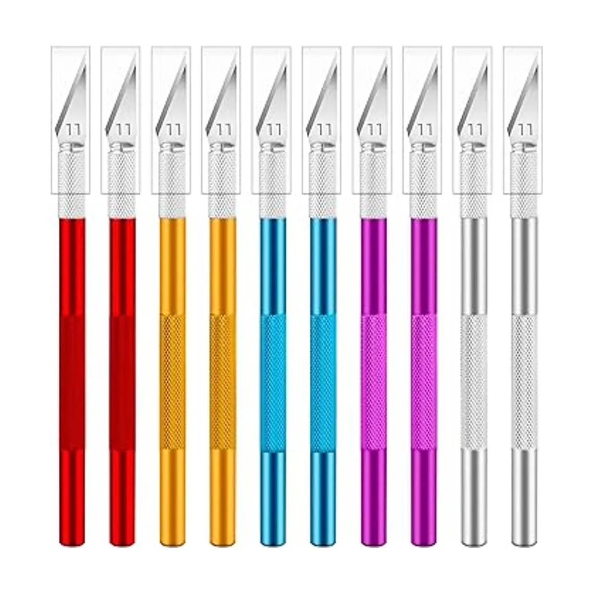 Jetmore Paquete de 10 cuchillos exactos, juego de cuchillos coloridos para manualidades, juego de cuchillos exactos afilados, cuchillos de precisión para bricolaje, arte, cortar, tallar, tallar calabazas de Halloween, álbumes de recortes