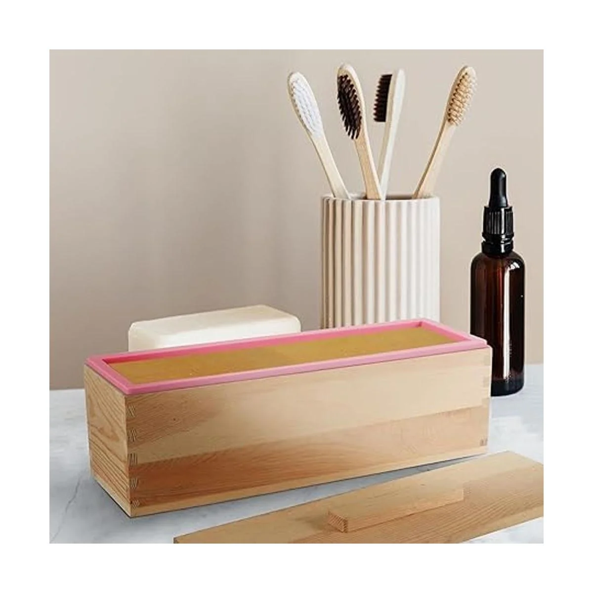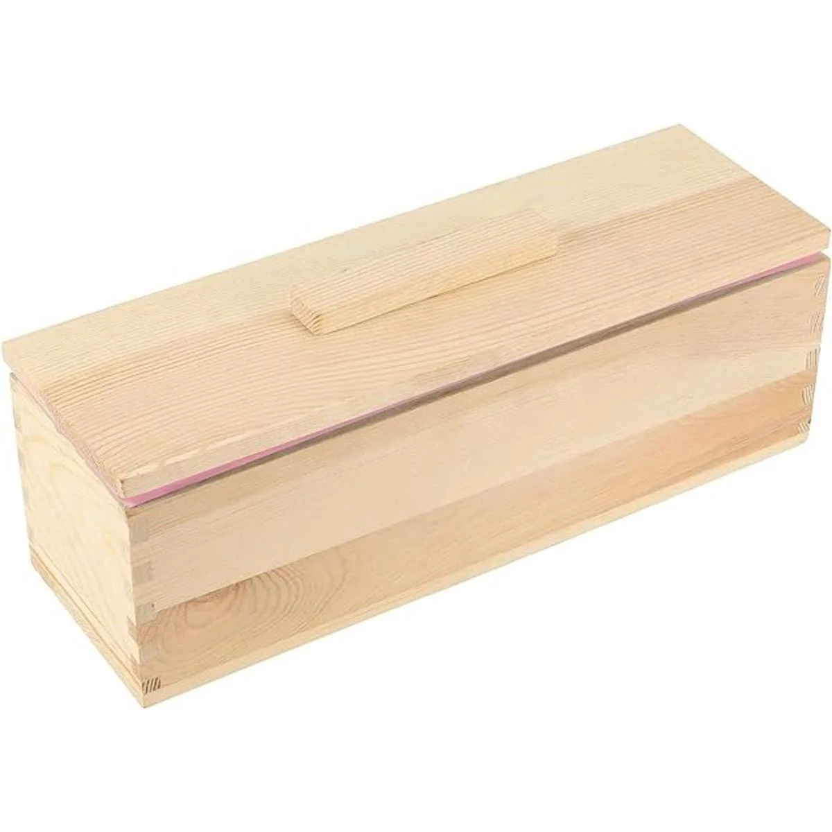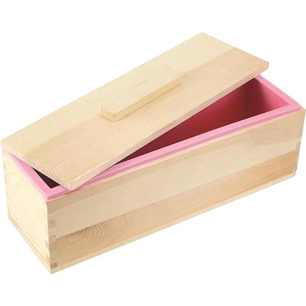 JEUIHAU Juego de 3 moldes de silicona para pan de jabón de 42 onzas, molde rectangular flexible de silicona para jabón, molde rectangular de silicona con caja de madera y cubierta para hacer pasteles de jabón y chocolate