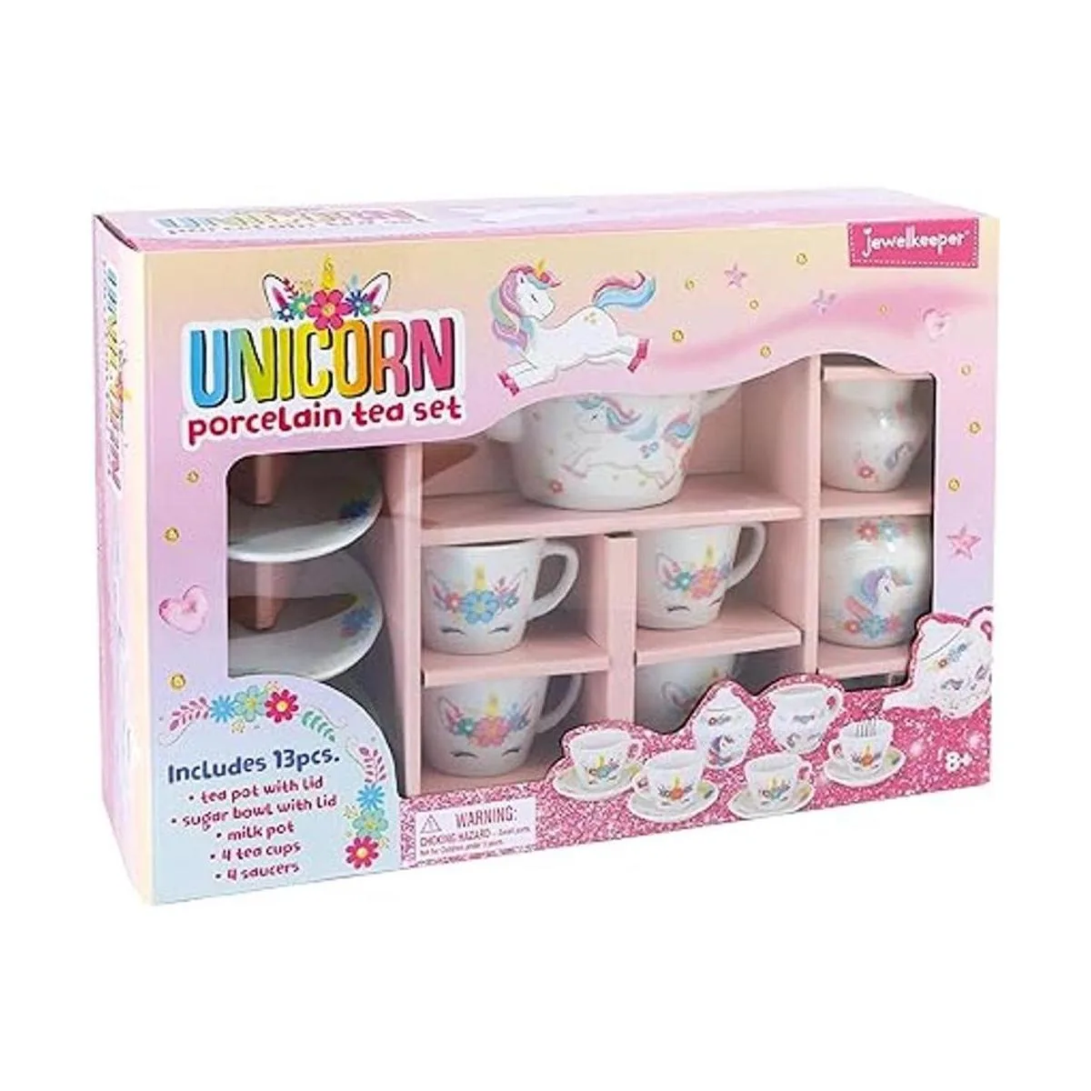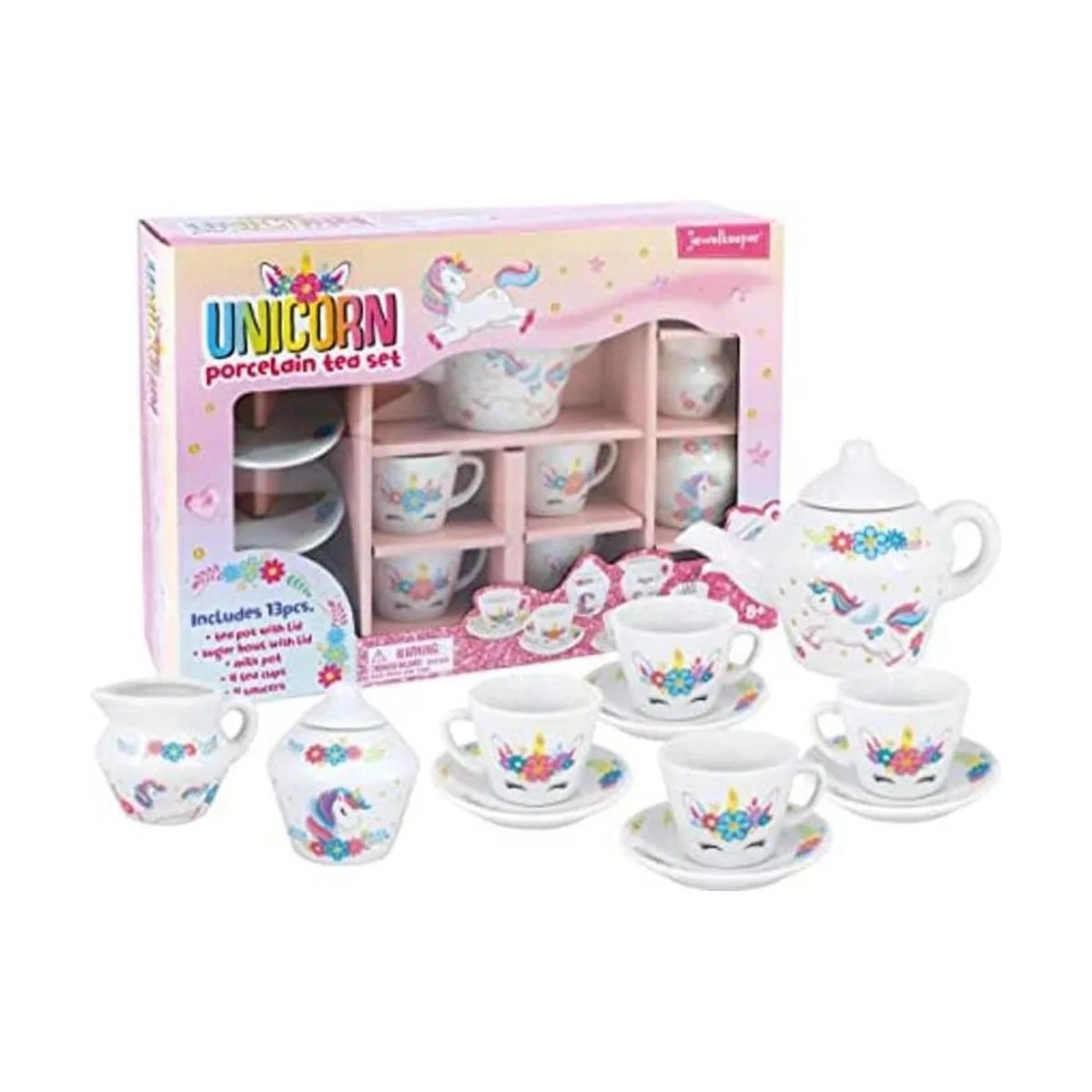 Jewelkeeper Juego de fiesta de té de porcelana de unicornio para niñas pequeñas, 13 piezas para niñas adolescentes