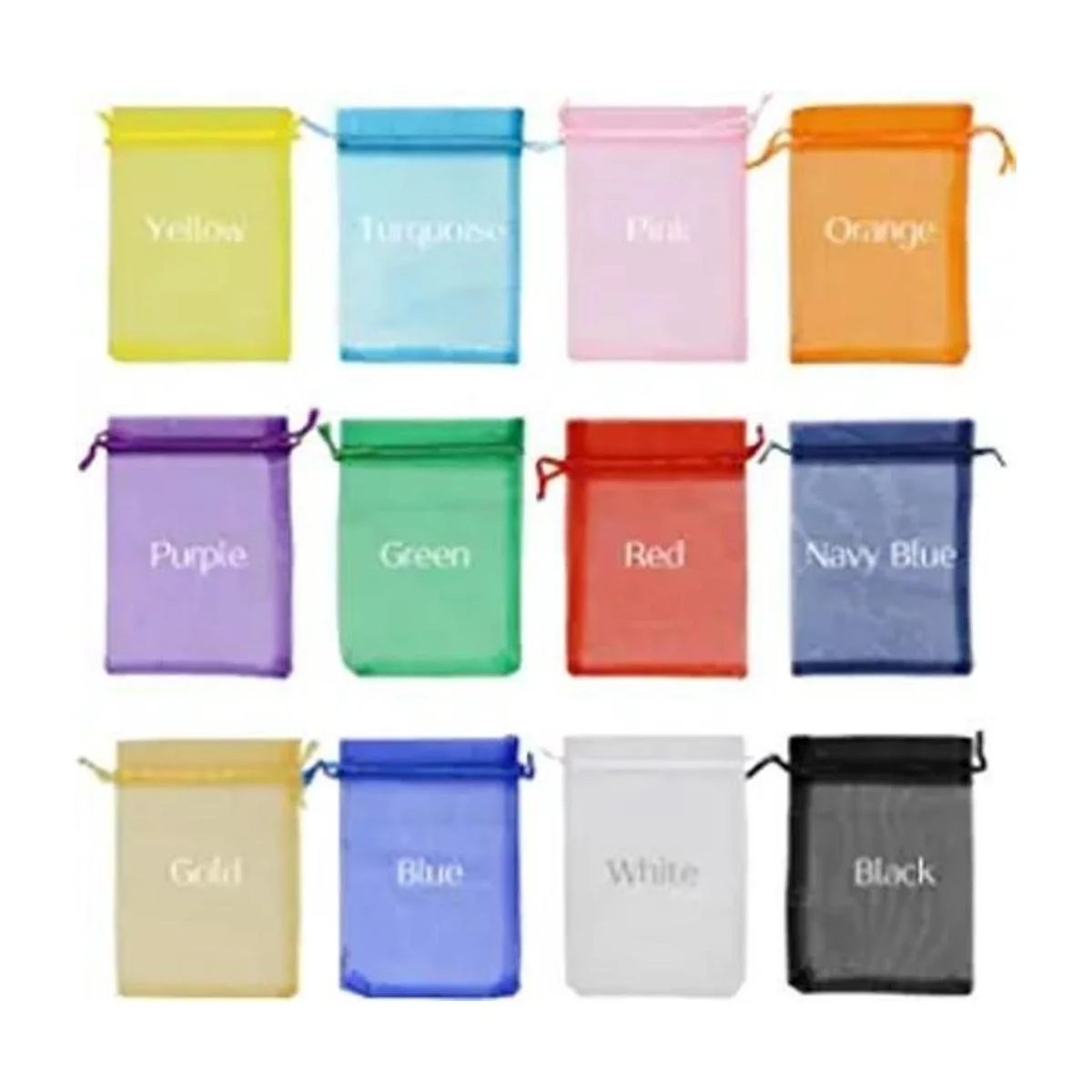 Jexila 120 bolsas de organza transparentes de 4.7 x 7.1 in, surtidas con cordón de malla para joyas, bolsas de regalo pequeñas para bodas, fiestas y baby shower, bolsas de regalo surtido de 4.7 x 7.1 in