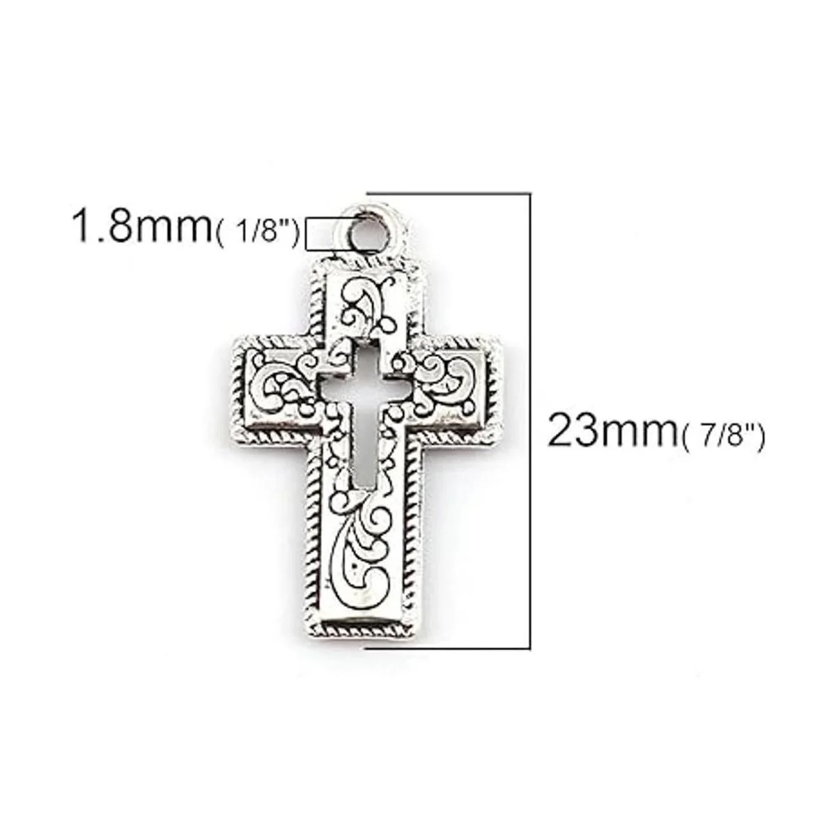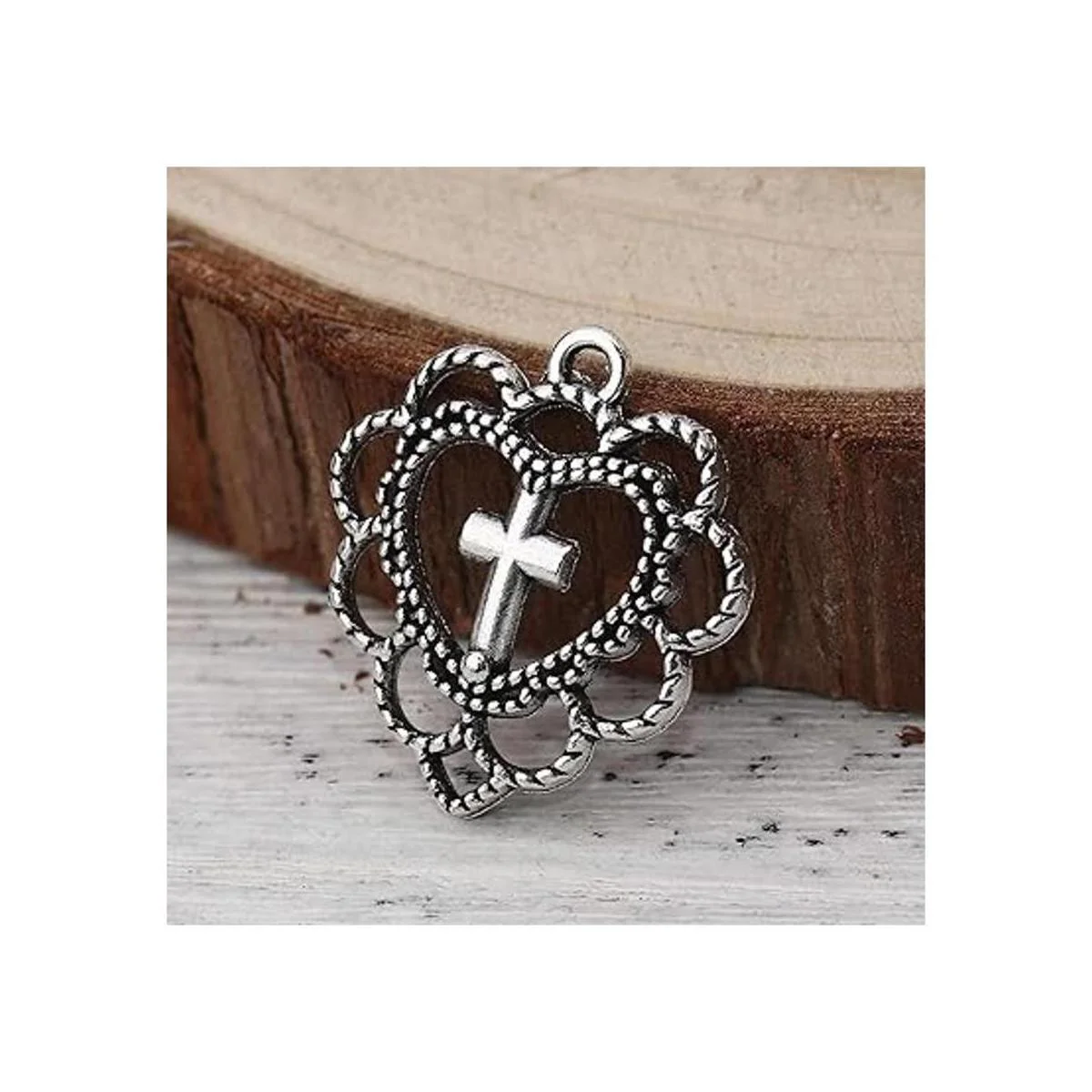 Delicados colgantes de corazón y cruz: 7/8 pulgadas con una campana de 1/8 pulgadas perfecta para dijes de cruz en un kit de fabricación de pulseras.