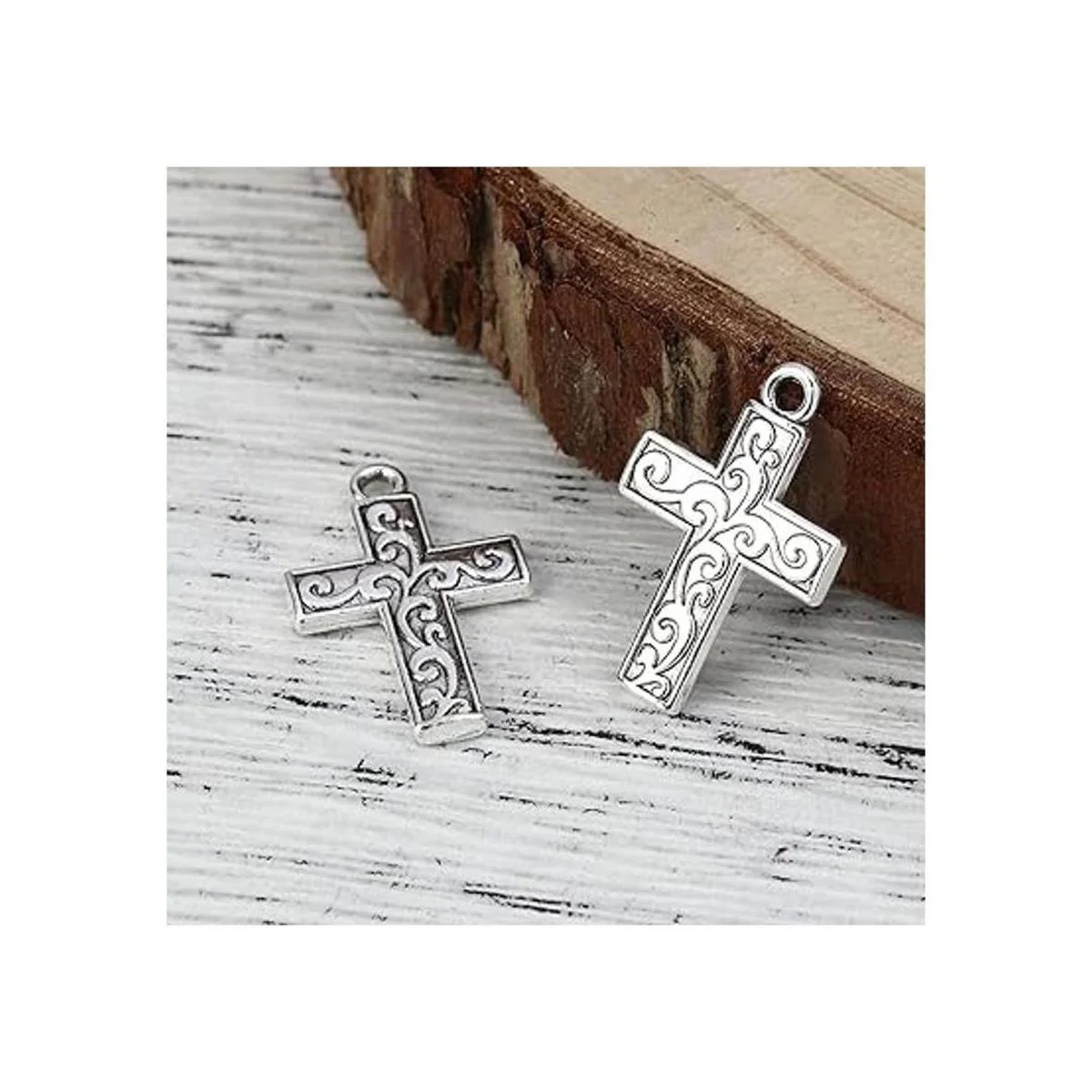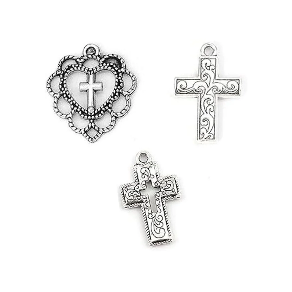 JGFinds Colgantes de cruz Paquete de 130 30 de corazón, 50 de cada una de las cruces aspecto de filigrana de estilo antiguo, tono plateado, 1 pulgadas, suministros para hacer joyas de bricolaje, Zinc
