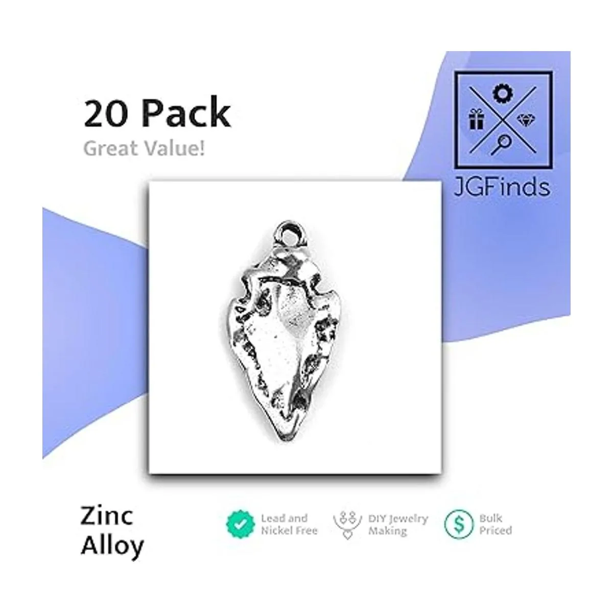 JGFinds Colgantes de punta de flecha inspirados en nativos americanos, dijes para hacer joyas de bricolaje, paquete de 20, 34 x 38 inch, Zinc