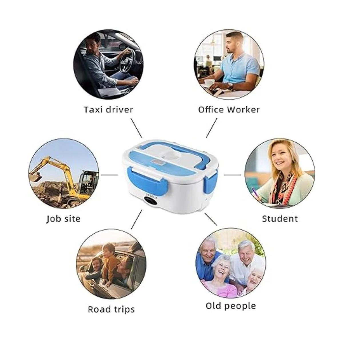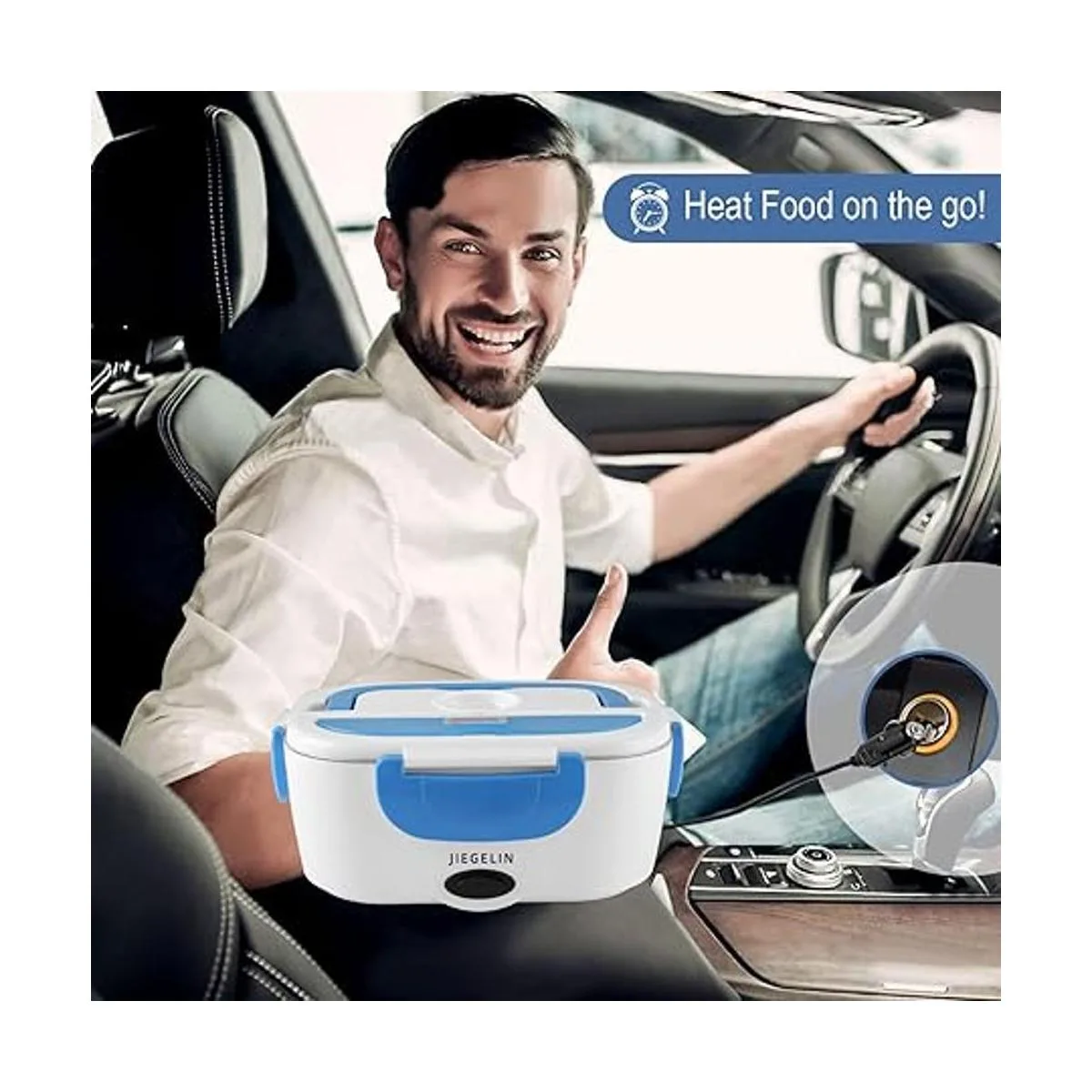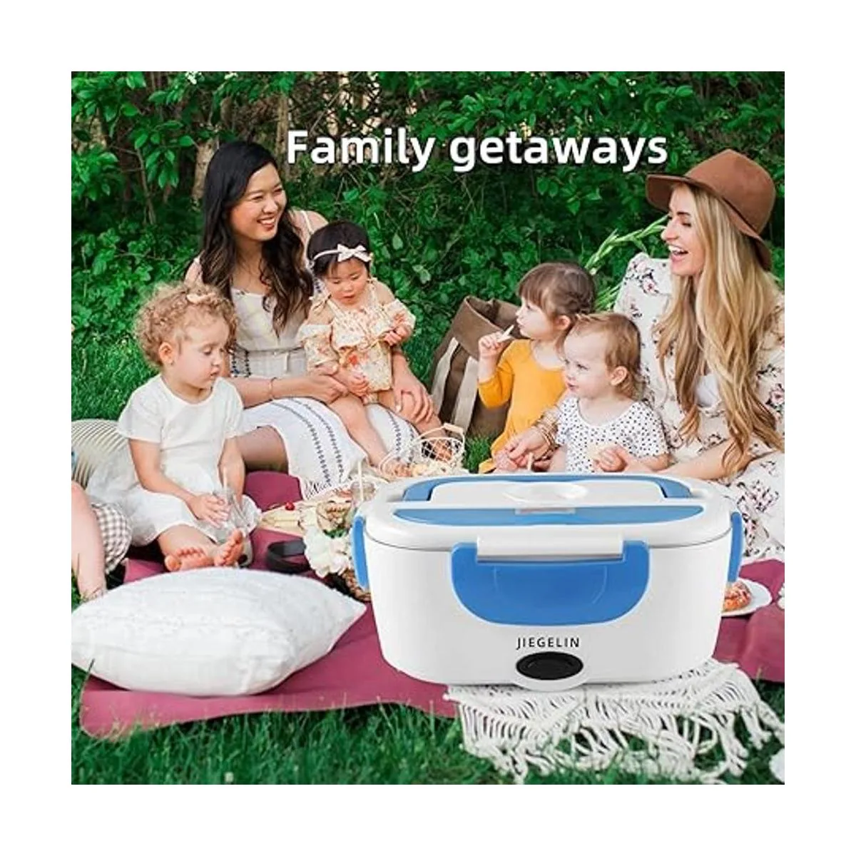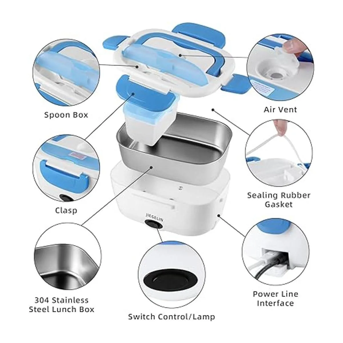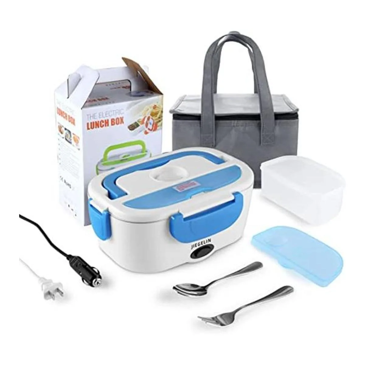 JIEGENLIN Fiambrera eléctrica 2 en 1, 12 V24 V110 V220 V portátil para automóviles y hogares, tenedor de contenedor de acero inoxidable y cuchara y bolsa portátil azul