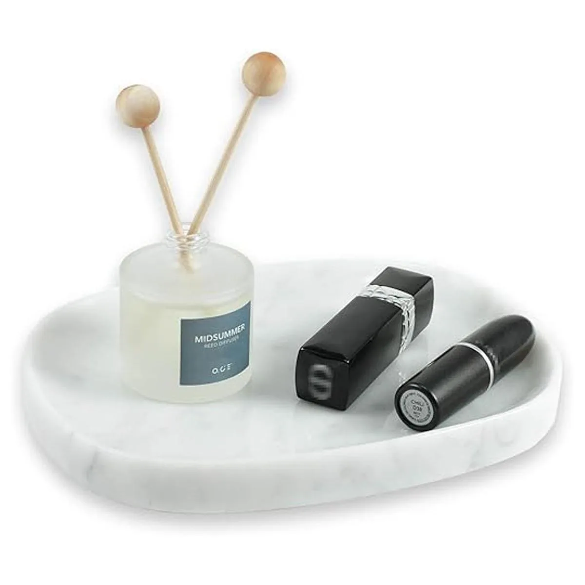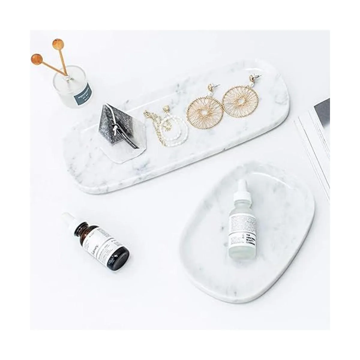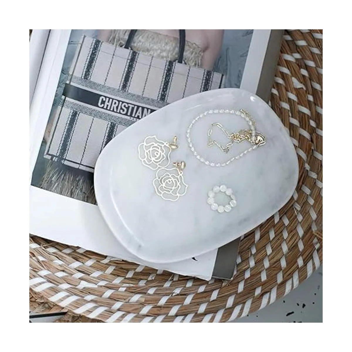 JIMEI Bandeja decorativa de mármol para tocador, organizador de almacenamiento ovalado, mini baño, cocina, tocador, soporte para anillos para mostrador, tocador, tocador, mesita de noche o escritorio
