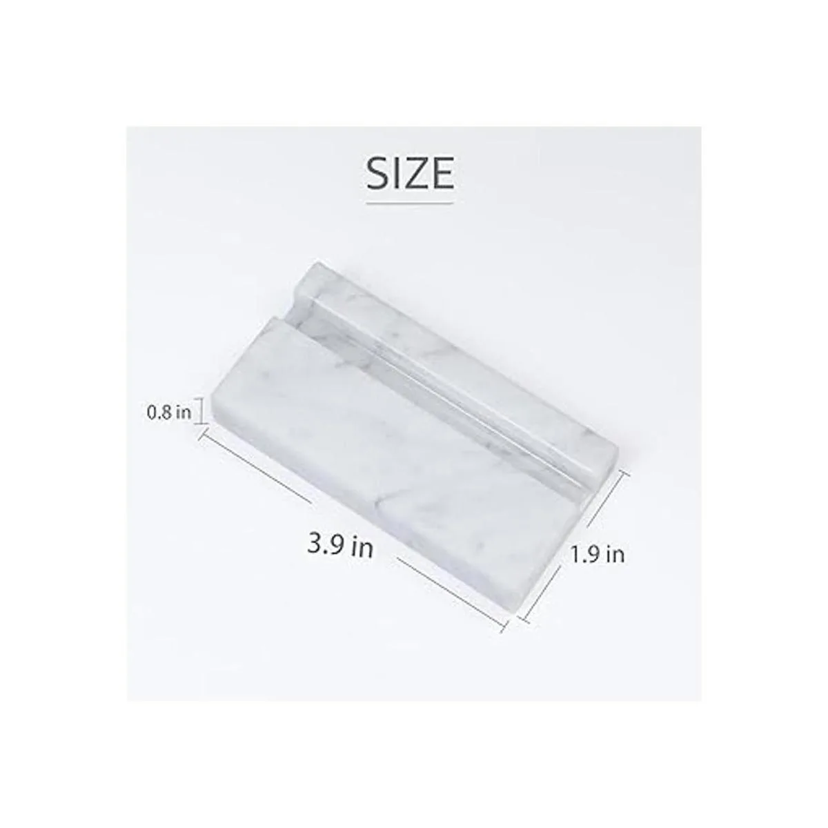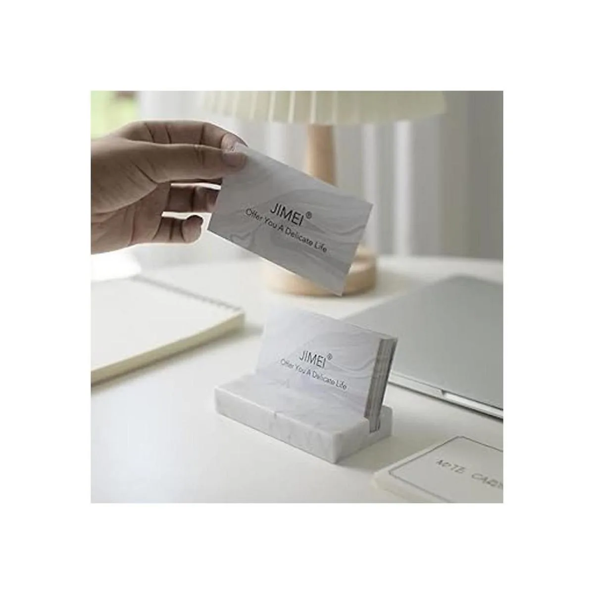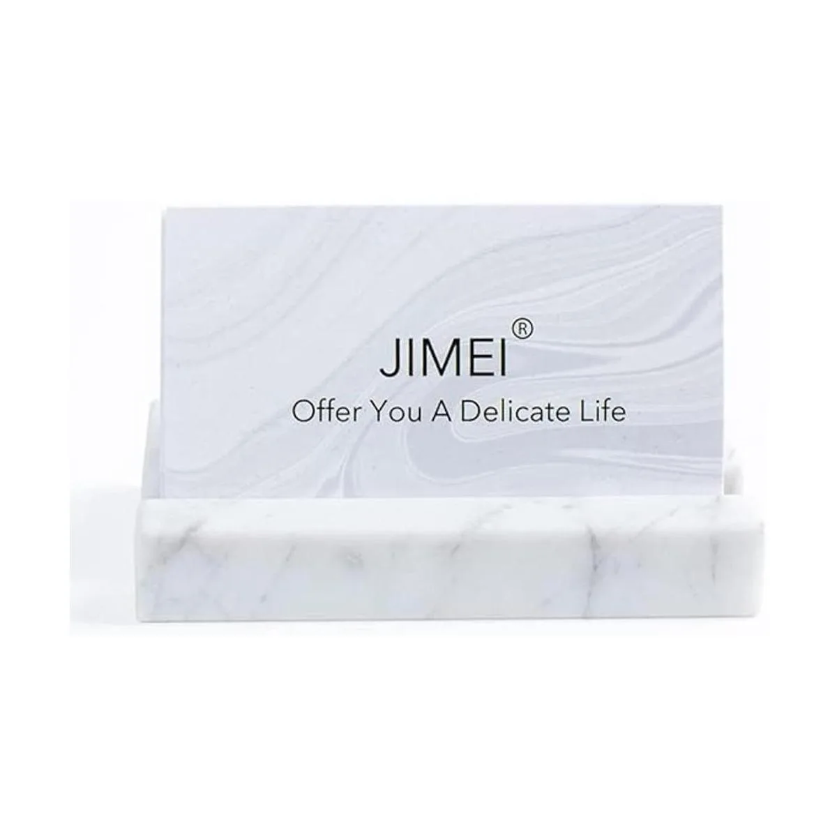 JIMEI Portatarjetas de visita para escritorio, elegante soporte para tarjetas de visita, hecho de mármol blanco de Carrara, soporte organizador de escritorio para 25 tarjetas de visita, bonito accesorio de escritorio de oficina para hombres y mujeres
