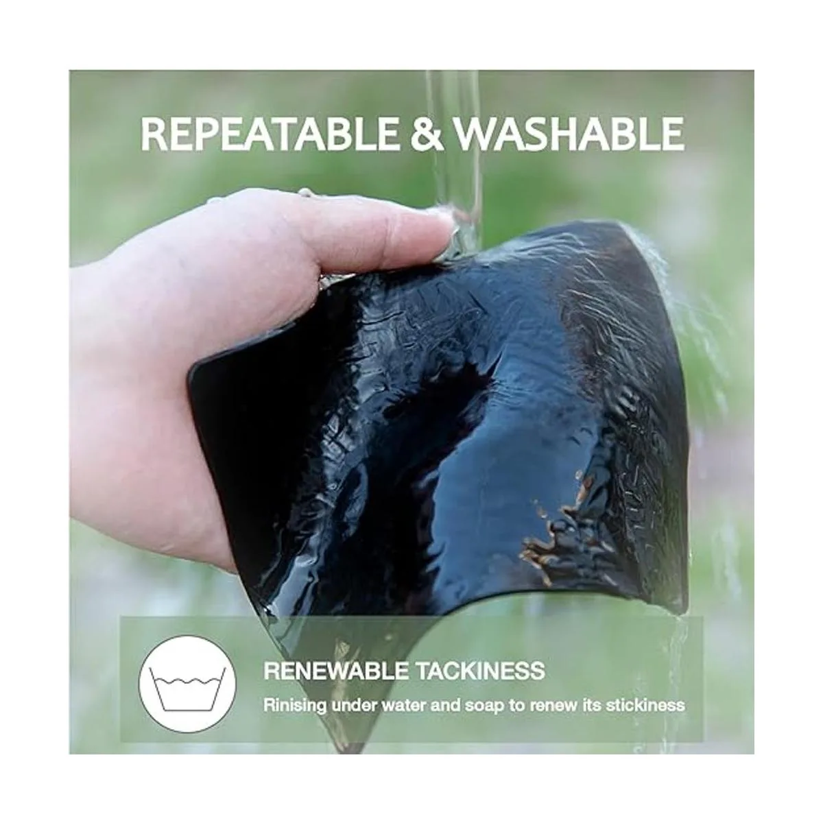 Pegamento reutilizable y renovable: estas almohadillas de gel se pueden utilizar muchas veces, y no dejan ningún residuo ni daño a cualquier cosa que se pegue. Enjuaga con agua tibia y jabón para limpiar y renovar su adherencia.