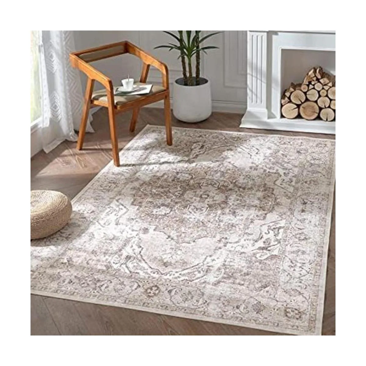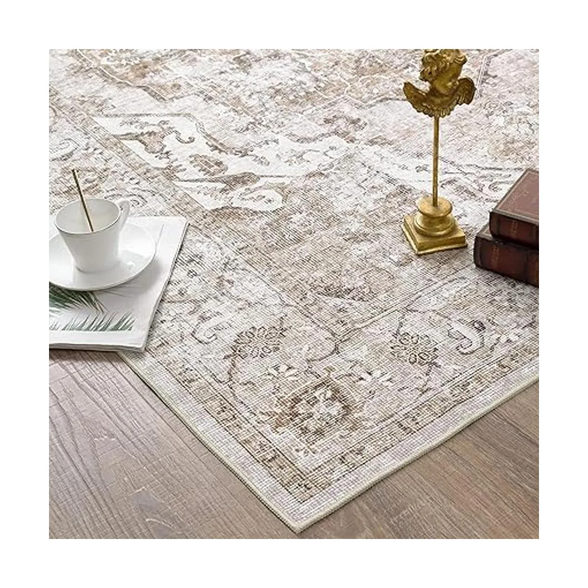 JINCHAN Alfombra persa de 4 x 6 pies, estilo vintage, cubierta de suelo de cocina, alfombra tradicional, plegable, delgada, color gris pardo, con estampado floral envejecido, alfombra interior para baño, dormitorio, sala de estar, comedor