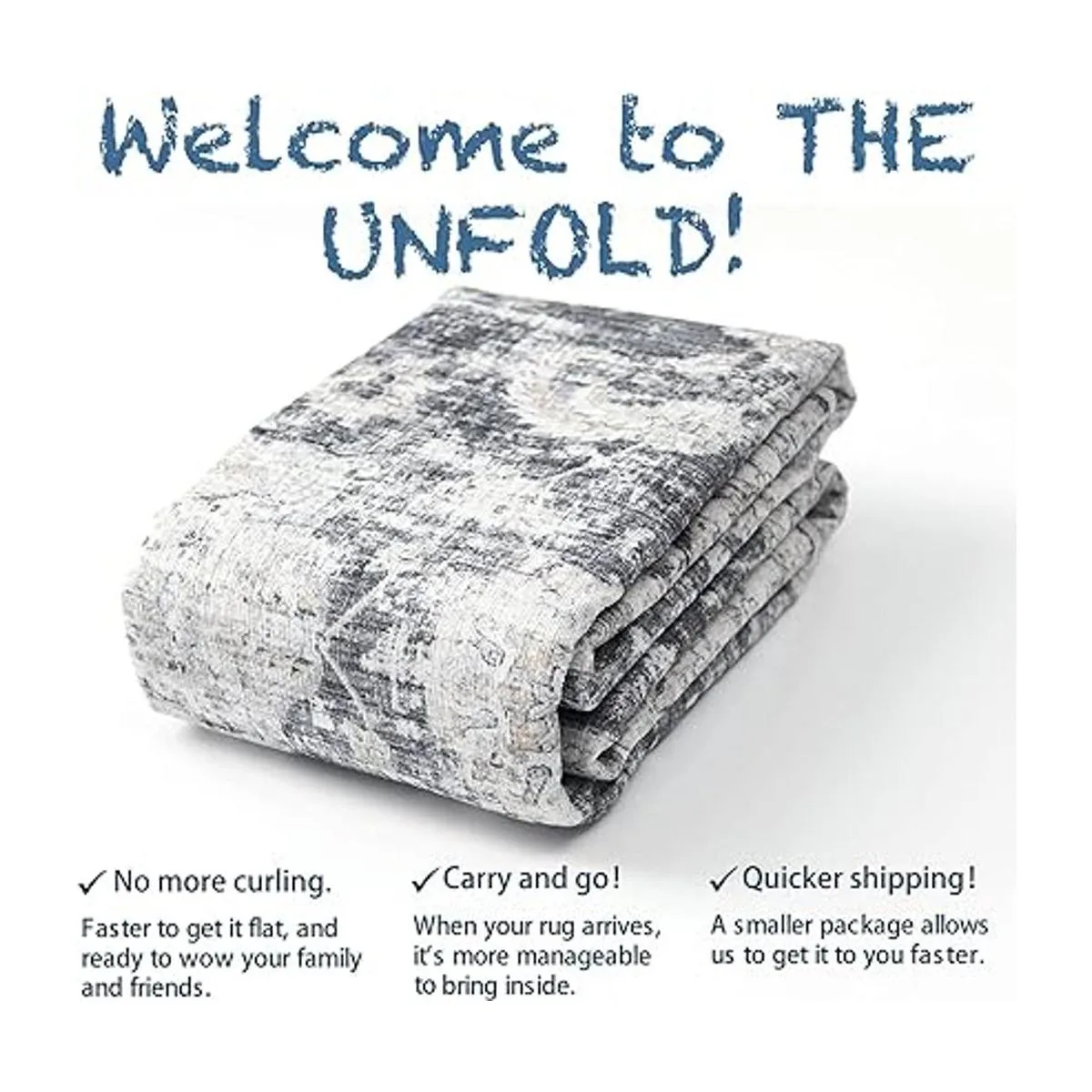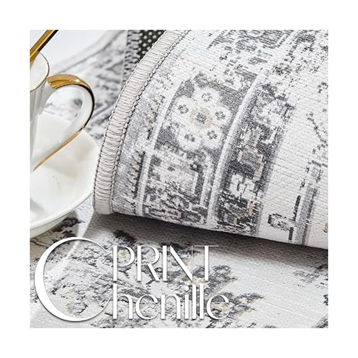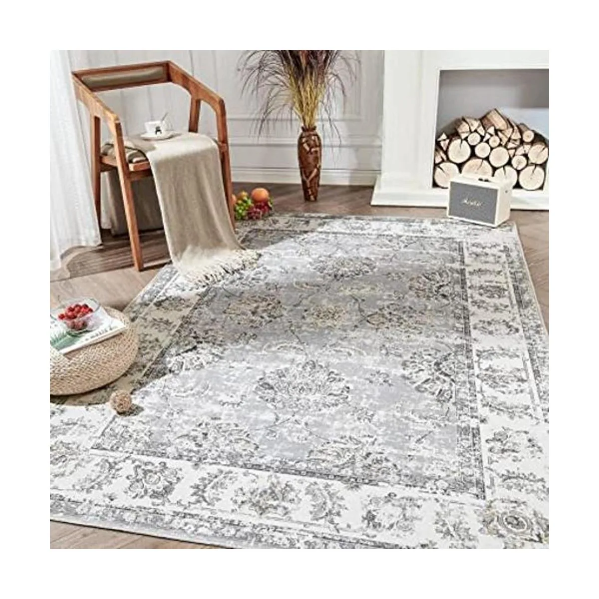 JINCHAN Alfombra persa de 6 x 9 pulgadas, color gris, vintage, para interiores, con estampado floral, plegable, color gris, retro, antideslizante, para comedor, sala de estar, dormitorio, oficina