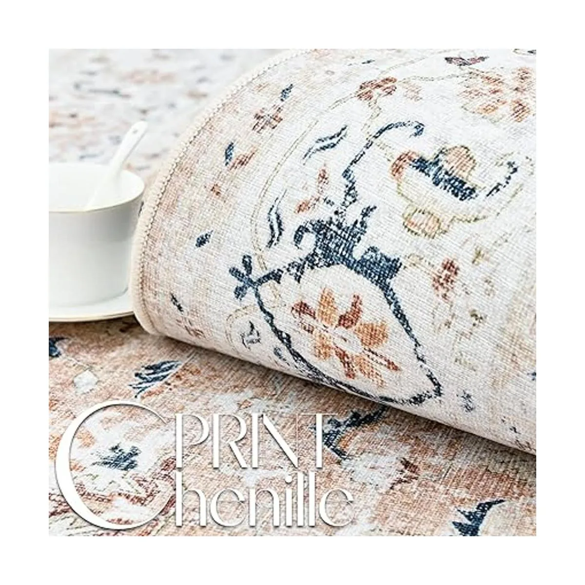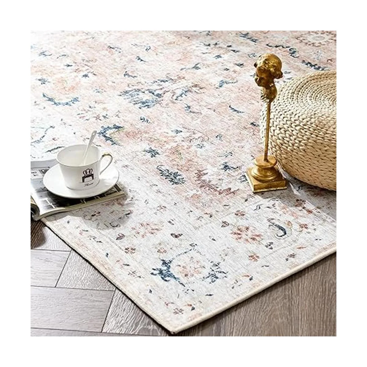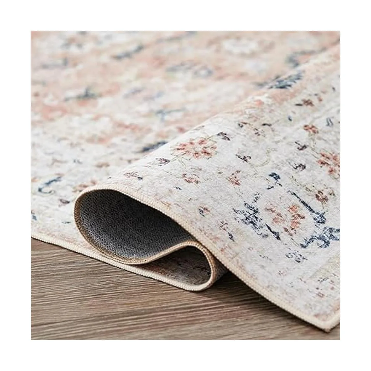 JINCHAN Alfombra persa vintage de 6 x 9 pulgadas, plegable, delgada, para interiores, retro, estampado floral, rosa, envejecida, antideslizante, cocina, sala de estar, dormitorio, comedor
