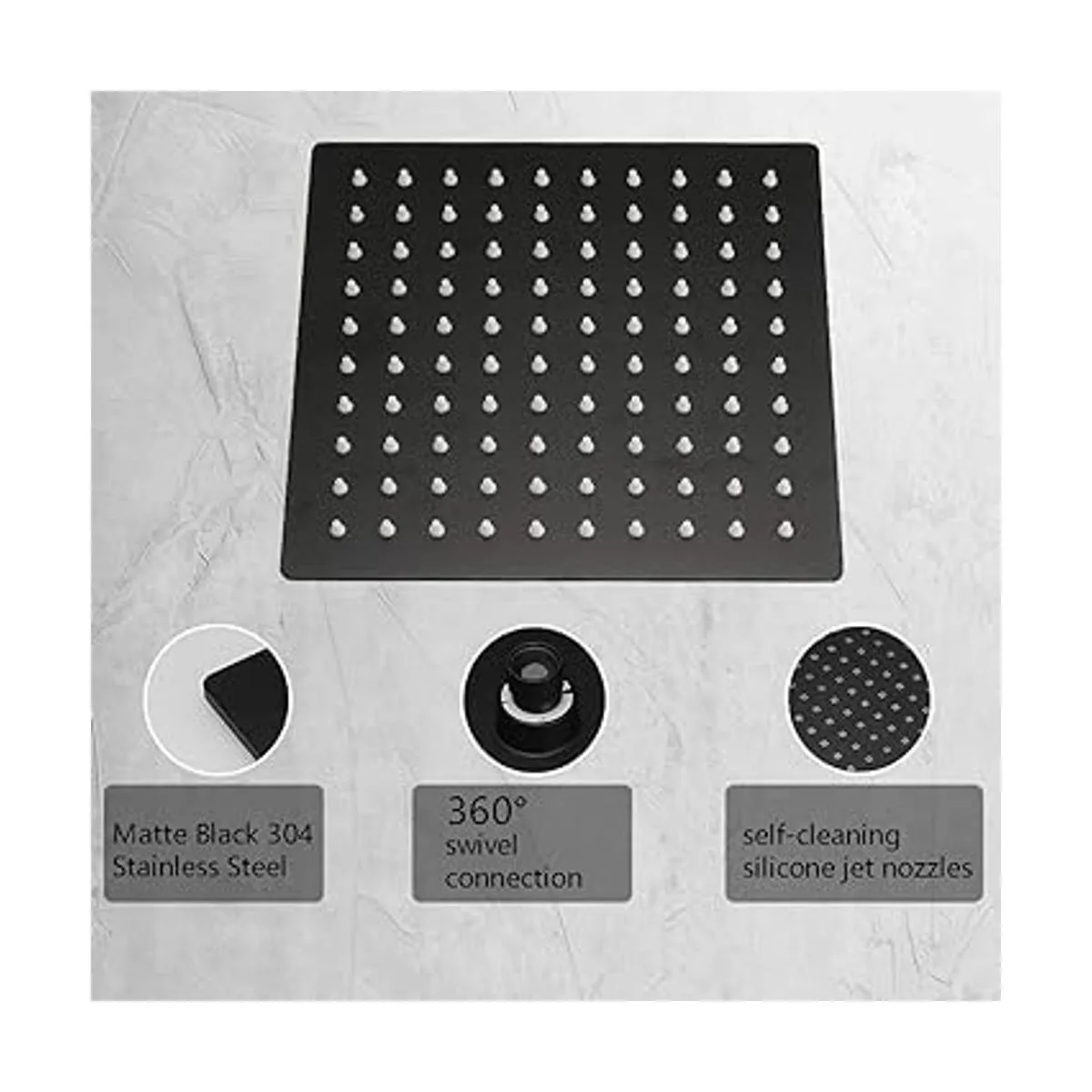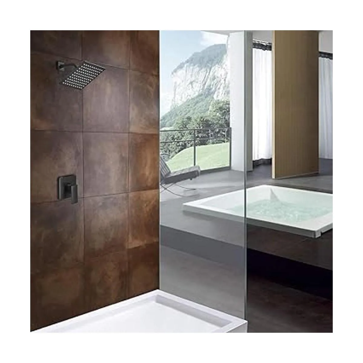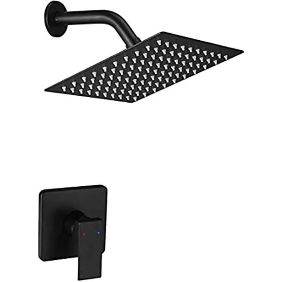 JingGang Juego completo de grifos de ducha de lluvia de color negro mate, juego de grifos de ducha de lluvia, sistema de ducha de una sola función con válvula rugosa