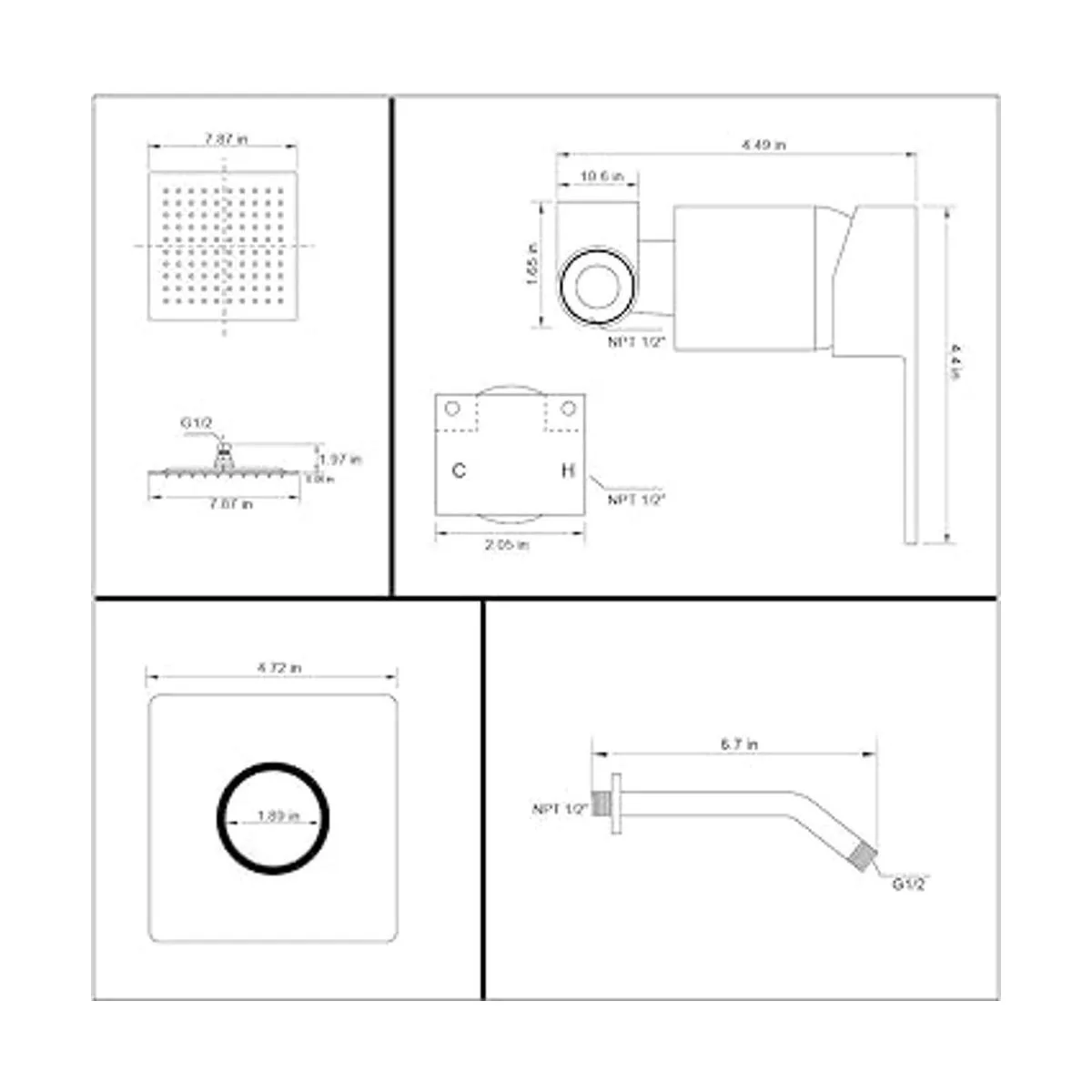 Diseño de montaje en pared: no hay necesidad de invertir en una instalación compleja y costosa de montaje en techo; simplemente cosecha los beneficios de una ducha superior con este diseño de cabezal de ducha cuadrado montado en la pared.